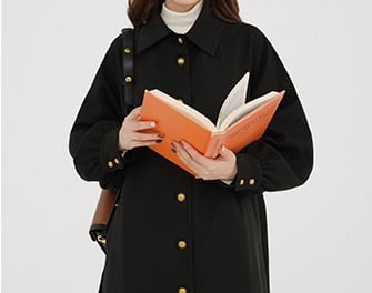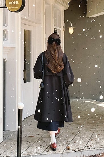 ブラックだけどどこかかわいい、気軽に着られるコートです。