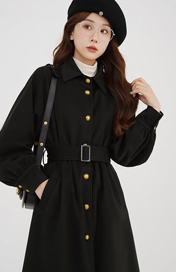 「ゴールデンイヤーズ」 ブラックウールコート 女性 秋 冬 ミドル丈スカートスタイルウールコート XXS XS S M L ロング丈 ウール かわいい 大人可愛い きれいめ シンプル カジュアル 大人 上品 おしゃれ 大人女子 冬 謝恩会 10代 20代 30代 40代 女性用 通勤 通学 お出かけ 普段使い | ameiro18
