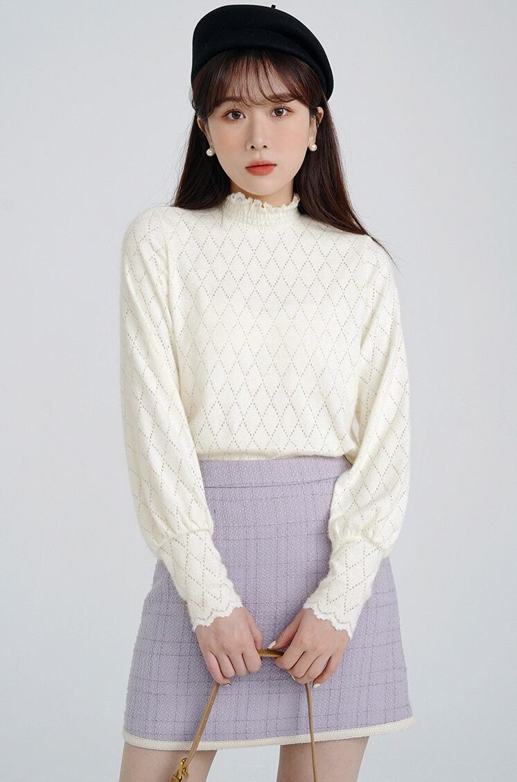 ロンバス 長袖Tシャツ レディース 春 秋 スタイル 甘くて絶妙なレーストップ ハーフ ハイカラー カットソー 白トップス 薄手 大人可愛い ラブリー キュート 二次会 OL 学生 デート お出かけ 女子会 オフホワイト S M L | ameiro18