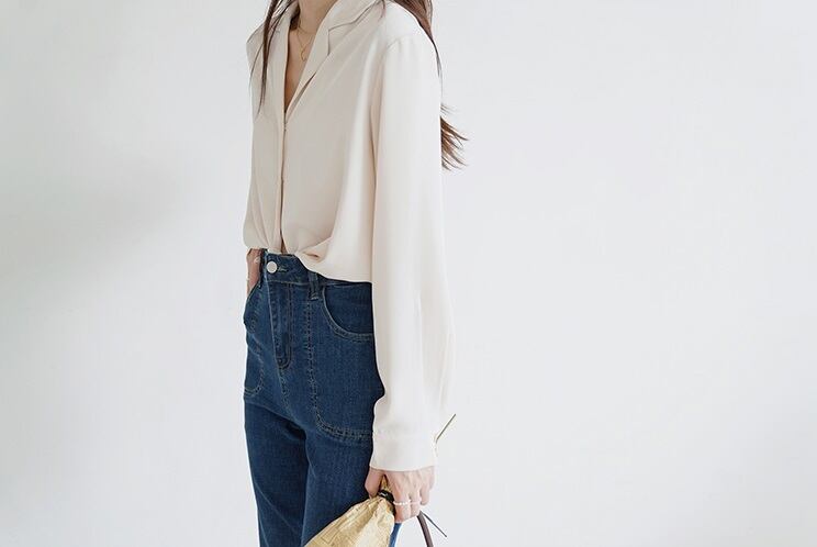 ライトクリーム 無地 長袖 シャツ 女性 春 秋 オールマッチ レトロ スーツ カラー シャツ トップ XS S M L トップス シャツ ブラウス 白シャツ 白トップス Vネック 大人可愛い きれいめ シンプル 上品 おしゃれ OL 通勤 学生 デート お出かけ 女子会 着回し 普段使い コーデ | ameiro18