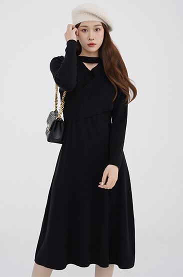 ブラック Aライン スカート 秋 冬 モーダルニット Vネック ドレス S M L ワンピース ロング ロング丈 長袖 大人可愛い きれいめ シンプル 大人 上品 おしゃれ かっこいい エキゾチック 大人可愛い 大人女子 クール モード系 セクシー エレガント 10代 20代 30代 40代 レディース ビジネス OL 通勤 学生 デート お出かけ 女子会 黒 ブラック | ameiro18