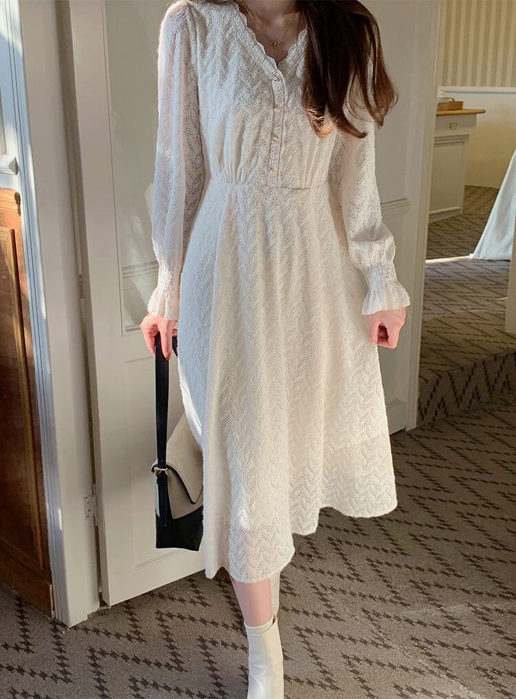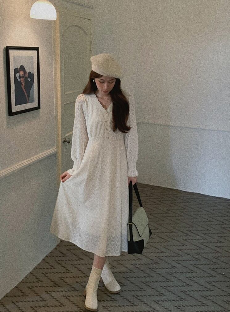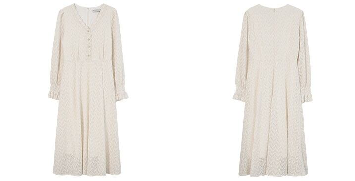 ちょっとクラシックな感じがかわいい、ニット感ワンピース。