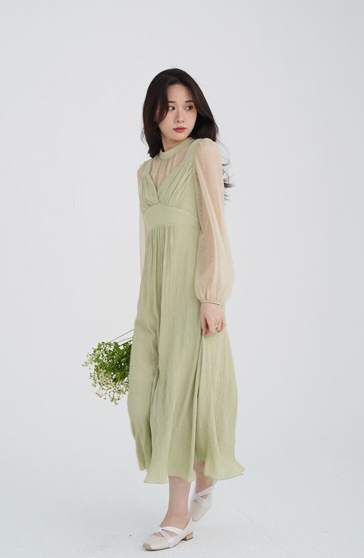 「ミストバニラ」レトロな質感 ドレープ生地 ドレス 春 Aラインロングドレス XXS XS S M L XL ワンピース ロング ロング丈 袖あり チュール シフォン かわいい 大人可愛い きれいめ シンプル 大人 上品 おしゃれ お洒落 大人可愛い 大人女子 春 夏 結婚式 二次会 披露宴 10代 20代 30代 40代 50代 デート 休日 アウトドア パーティー イベント リゾート 旅行 ホテル レストラン | ameiro18
