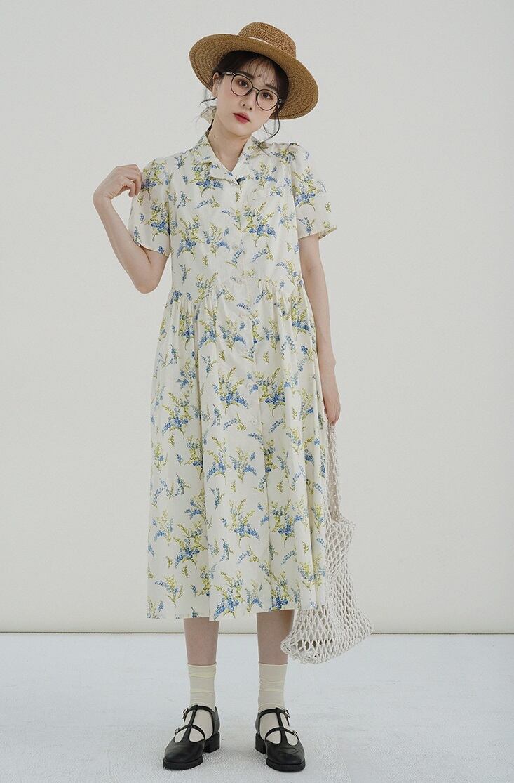 ちょっとクラシックな感じがかわいい、襟付きワンピース。
