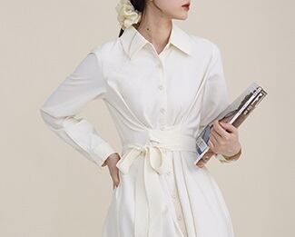 優しくて甘いシャツドレス 秋 冬 女性の長袖シャツ ハイウエストドレス 大ぶりなリボン付き XS S M L ワンピース ミモレ ミモレ丈 袖あり 長袖 襟付き セミフレア リボン ウエストリボン かわいい 大人可愛い きれいめ シンプル 大人 上品 おしゃれ お洒落 大人可愛い 大人女子 個性的 エレガント 春 夏 秋 冬 オールシーズン 二次会 クリスマス バレンタイン 10代 20代 30代 40代 50代 オフィス ビジネス デート お出かけ 公園デビュー 女子会 お泊まり 休日 パーティー