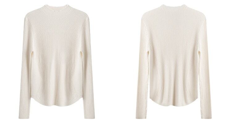 ハイネックで襟がないので、スリムでタイトなシルエットが大人可愛い雰囲気を出してくれます。また、袖ありの長袖デザインで、季節を問わず着用可能。オフィスやビジネス、OL、学生、通学、デート、幅広いシーンでご使用いただけます。