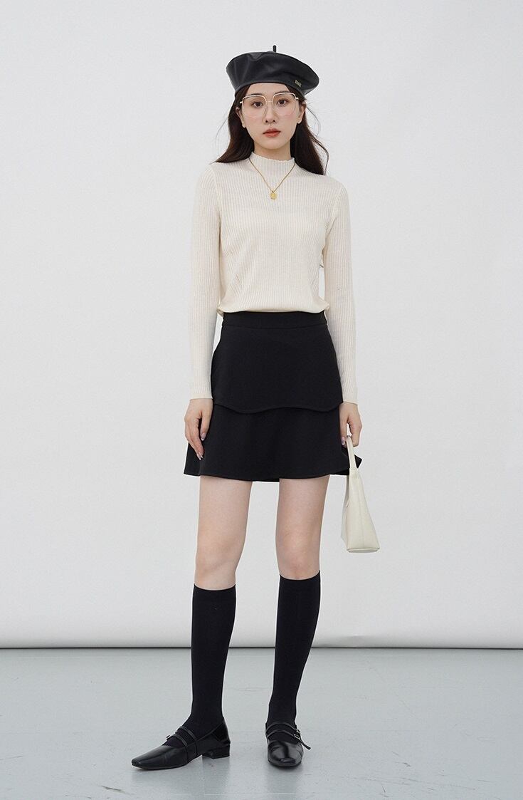 ハーフハイカラー ニット レディース 秋 冬 ベーシックスタイル シンプル スリム 薄手 プルオーバー レイヤード ボトム セーター アプリコット ブラック ライトブルー ライトカーキ S M L トップス ニットソー セーター 袖あり 長袖 ハイネック 襟なし スリム タイト 細身 大人可愛い きれいめ シンプル 大人 上品 おしゃれ お洒落 大人可愛い 大人女子 春 夏 秋 冬 オールシーズン 誕生日 クリスマス バレンタイン 10代 20代 30代 オフィス ビジネス OL 学生 通学 デート | ameiro18