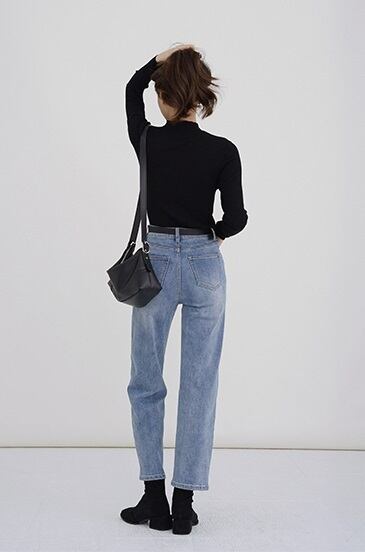 このハーフハイカラー ニットは、秋冬のコーディネイトにピッタリなアイテムです。薄手でレイヤードもしやすく、ボトムスにもよく合います。アプリコット、ブラック、ライトブルー、ライトカーキの4色展開で、S、M、Lの3サイズからお選びいただけます。