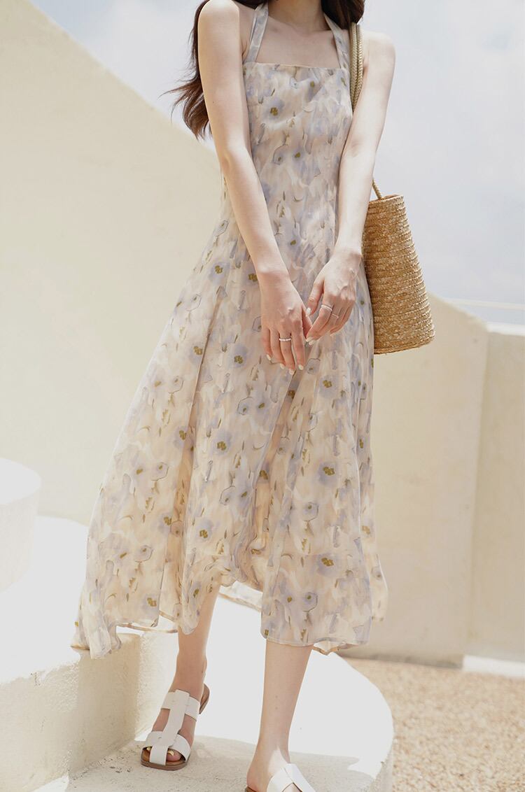 水彩プリント 美しい 吊りネック バックレス シフォンドレス レディース サマー ハイウエスト ビーチ ミッドレングスドレス XS S M L XLワンピース 膝丈 ひざ丈 ミモレ ミモレ丈 袖なし 細身 ストレート かわいい 大人可愛い きれいめ シンプル カジュアル 大人 上品 おしゃれ お洒落 大人可愛い 大人女子 キュート ガーリー 花柄 春 夏 秋 10代 20代 30代 40代 女性用 通勤 学生 デート お出かけ 公園デビュー 女子会 休日 パーティー リゾート 旅行 海 プール 普段使い | ameiro18