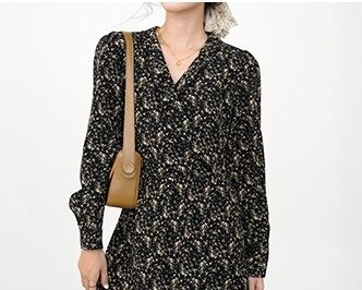 このドレスは、Vネックデザインで、ネックプリントがアクセントになっています。長袖だから、秋冬の季節でも、おしゃれに着こなせます。また、膝下丈で、シンプルなデザインなので、オフィスやデート、女子会と、幅広いシーンで着回しができます。
