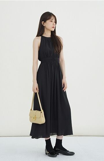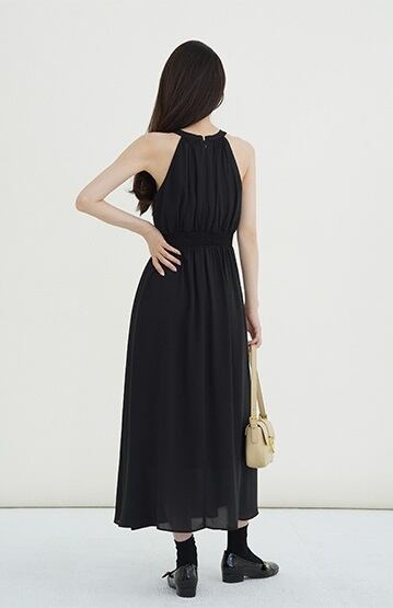 ブラック ホルターネック ラウンドネックドレス ノースリーブ ロングドレス 無地 ウエスト スリム フェアリー シフォン スカート アプリコット ブラック XS S M L XLワンピース ブラウス 膝下 袖なし スリム タイト 細身 ストレート かわいい 大人可愛い きれいめ シンプル カジュアル 大人 上品 おしゃれ お洒落 大人可愛い 大人女子 キュート ガーリー セクシー 無地 春 夏 秋 誕生日 クリスマス バレンタイン 10代 20代 30代 レディース 女性用 トレンド 流行 | ameiro18