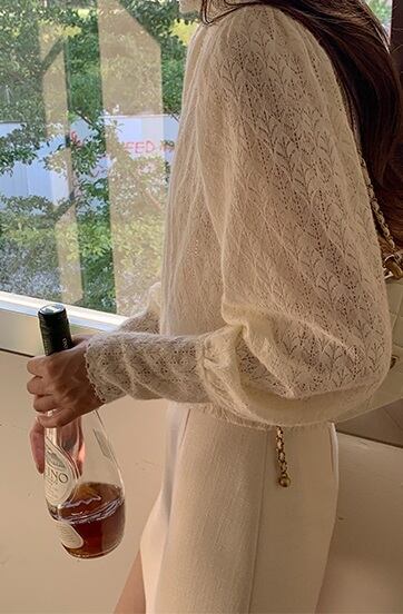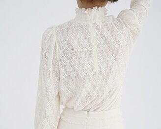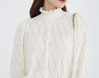 デザインセンスが光るレース使いの長袖プルオーバー。オフホワイトの無地が、どんなボトムスにもマッチします。