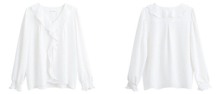 フリルシフォンシャツ 白シャツ トップス レディース 春 夏 スリム 長袖 ホワイト ブラック XS S M L トップス Tシャツ シャツ 白シャツ 白トップス 袖あり 長袖 Vネック 襟なし かわいい 大人可愛い きれいめ シンプル カジュアル 大人 上品 おしゃれ お洒落 大人可愛い 大人女子 ラブリー キュート 無地 春 夏 秋 冬 オールシーズン 10代 20代 30代 40代 レディース 女性用 女の子 オフィス OL 通勤 着回し 普段使い モテ 定番 トレンド 流行 色展開 白 | ameiro18