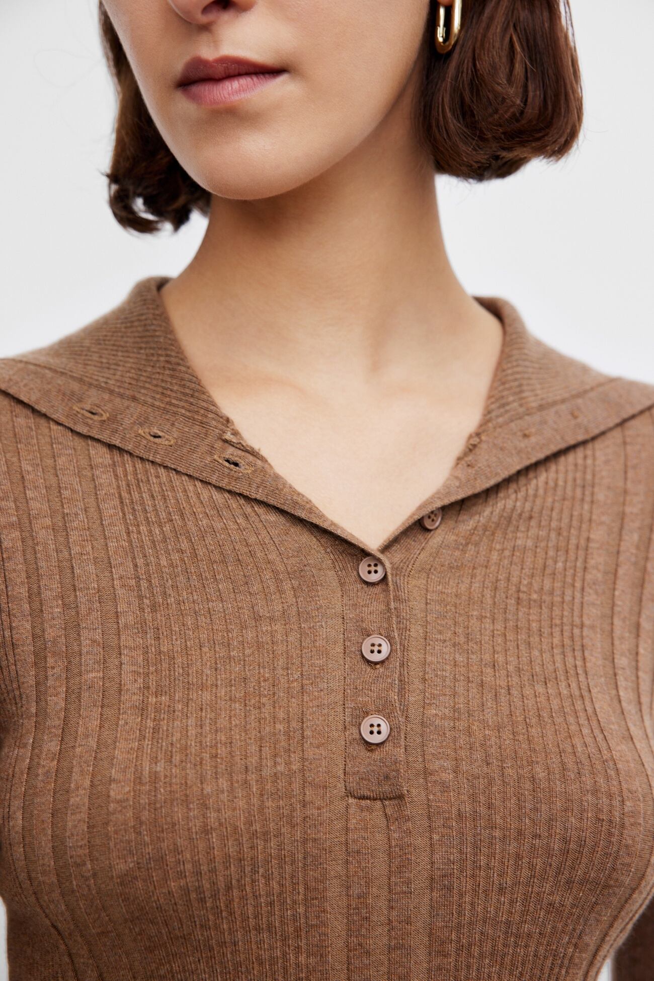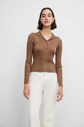 フィット感抜群のレディースニットTシャツが新登場!カーキブラウンのマニッシュなカラーが大人可愛い雰囲気を演出します。Vネックでメリハリのあるシルエットに仕上げ、キュートでガーリー、上品でおしゃれな印象を与えます。