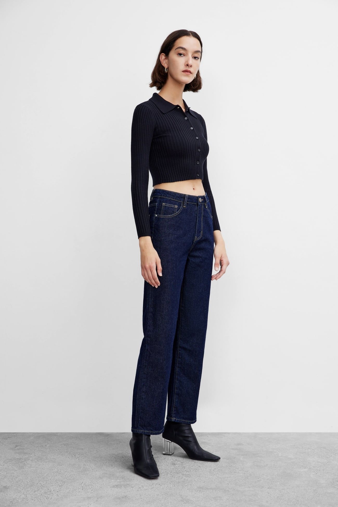 この商品は、大人可愛いスタイルを演出できる、かわいいピットストライプのポロカラーセーターです。シンプルなデザインだから、さまざまなコーディネートに合わせやすく、長袖で春秋に大活躍します。