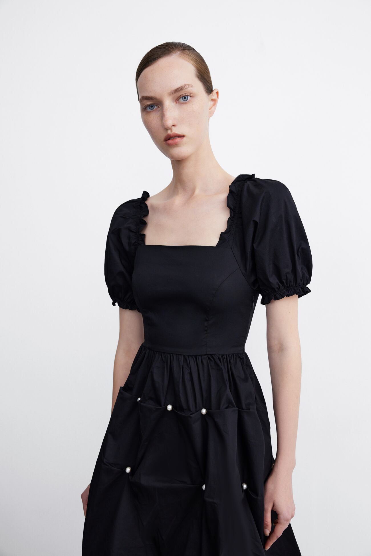 レディース デザイン センス スクエア カラー ビーズ ミドル丈ワンピ ワンピース ブラック XS S M L XL トップス 袖あり 半袖 かわいい 大人可愛い きれいめ シンプル カジュアル 大人 上品 おしゃれ お洒落 大人可愛い 大人女子 キュート ガーリー 無地 春 夏 秋 オールシーズン 誕生日 母の日 10代 20代 30代 40代 オフィス OL 通勤 通学 デート 女子会 お泊まり 休日 旅行 着回し 普段使い モテ トレンド 流行 インスタ映え 色展開 黒 ブラック