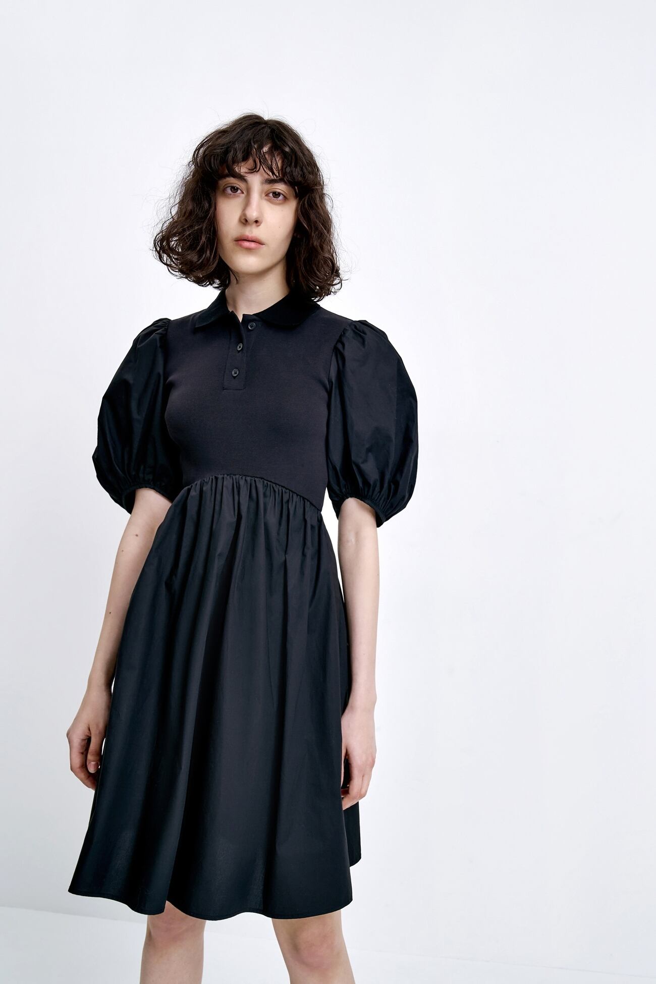 春 婦人服ファッション スプライシング ポロ パフスリーブ風 ドレス ワンピース ブラック S ワンピース 膝上 袖あり 長袖 かわいい 大人可愛い きれいめ シンプル 大人 上品 おしゃれ お洒落 大人可愛い 大人女子 キュート ガーリー 無地 春 夏 秋 誕生日 母の日 10代 20代 30代 40代 オフィス OL 通勤 通学 デート 女子会 お泊まり 休日 旅行 着回し 普段使い モテ トレンド 流行 インスタ映え 色展開 黒 ブラック