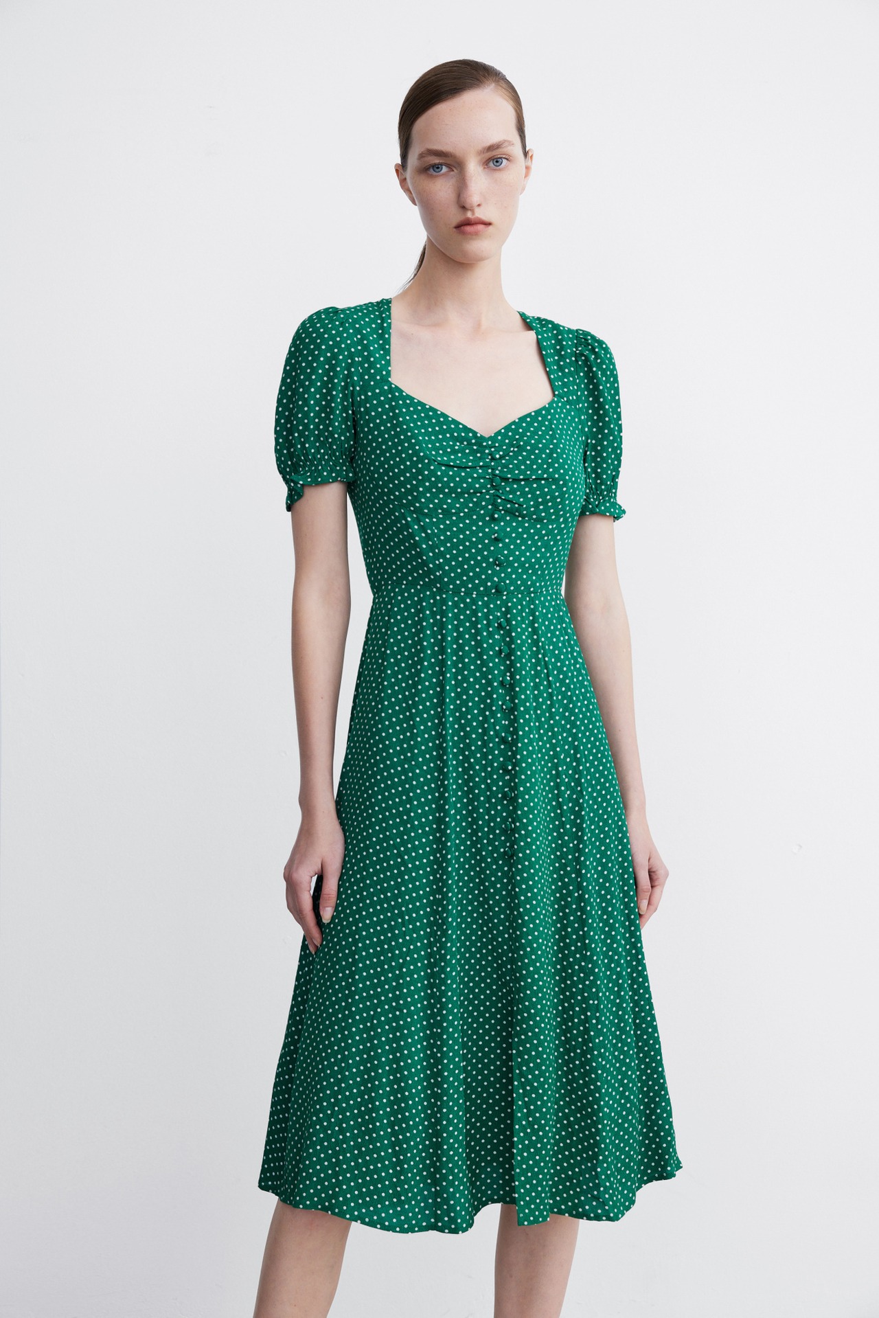 春 夏 レディース レトロ ストーム ドット ピンチ プリーツ ウエスト トレジャー ドレス ワンピース ダークグリーン ブラック XS S M L ワンピース 膝下 袖あり 半袖 かわいい 大人可愛い きれいめ シンプル 大人 上品 おしゃれ お洒落 大人可愛い 大人女子 キュート ガーリー 無地 春 夏 秋 誕生日 母の日 10代 20代 30代 40代 オフィス OL 通勤 通学 デート 女子会 お泊まり 着回し 普段使い モテ トレンド 流行 インスタ映え 色展開 黒 ブラック 緑 グリーン | ameiro18