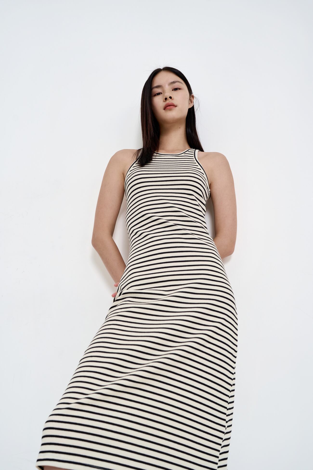 キュートで大人可愛い秋の一枚。無地とストライプ柄を巧みに組み合わせたデザインであなたを輝かせます! ノースリーブのトレジャードレスは、シンプルなデザインで大人上品な印象。黒地に白のストライプが程よく入ることで、洗練されたスタイルが完成します。