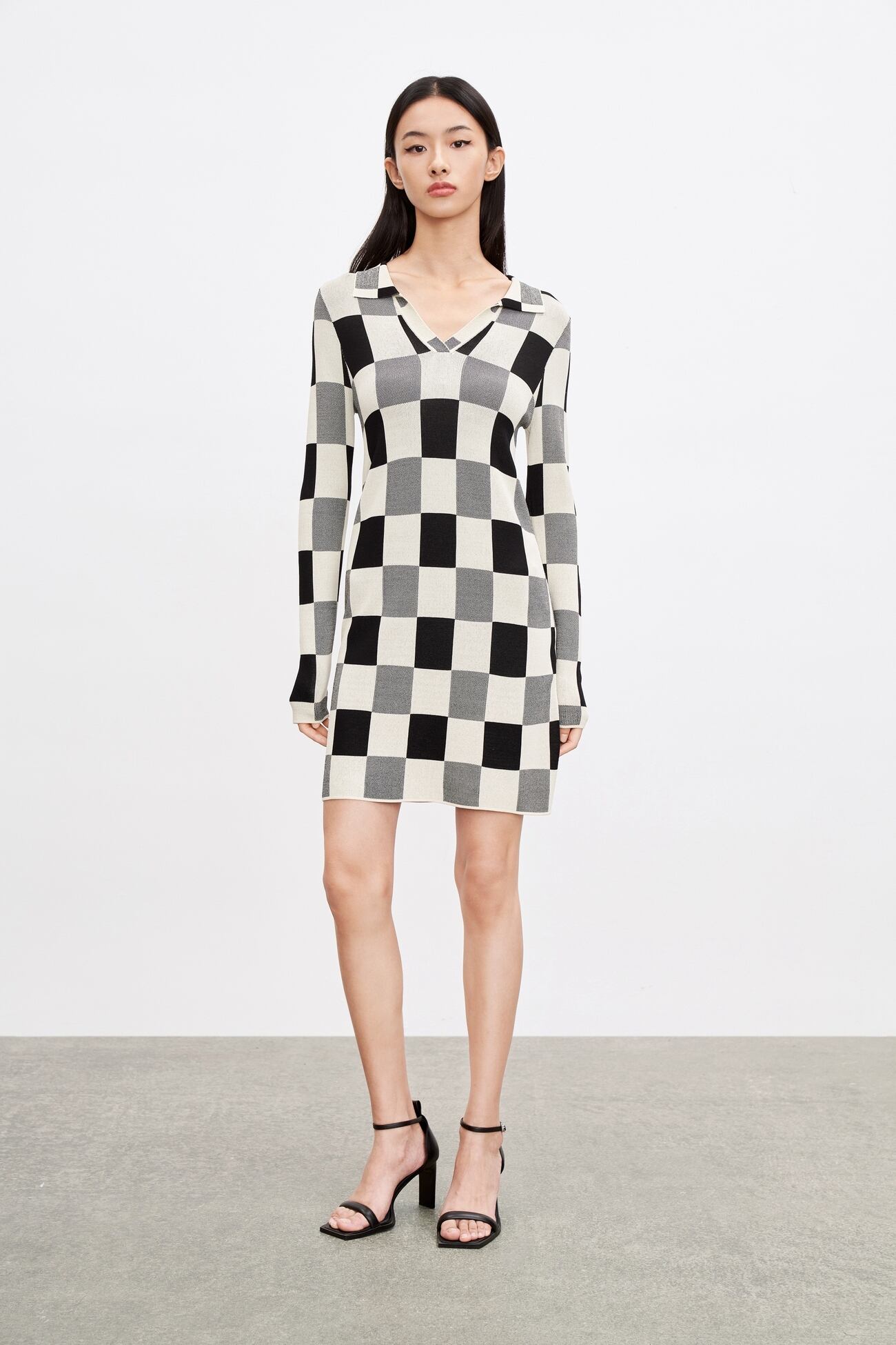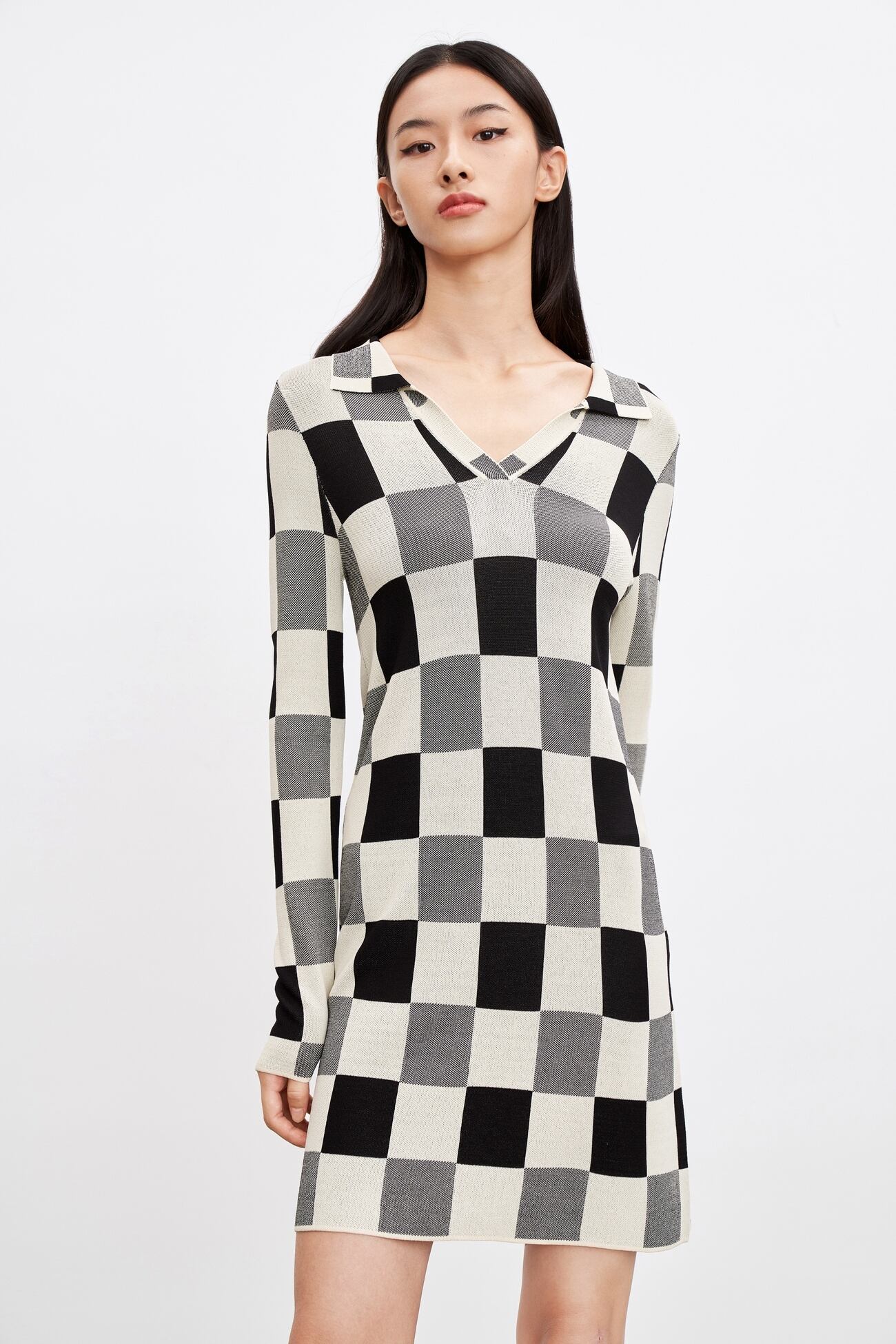 レトロスタイルにぴったりの、チェッカーボード柄のプルオーバーワンピースです!Vネックのデザインは、すっきりとした印象で品良く着こなせます。長袖は、秋の肌寒い季節でも活躍してくれるアイテムとなっています。シンプルでありながら、甘くて可愛らしい雰囲気が漂います。~