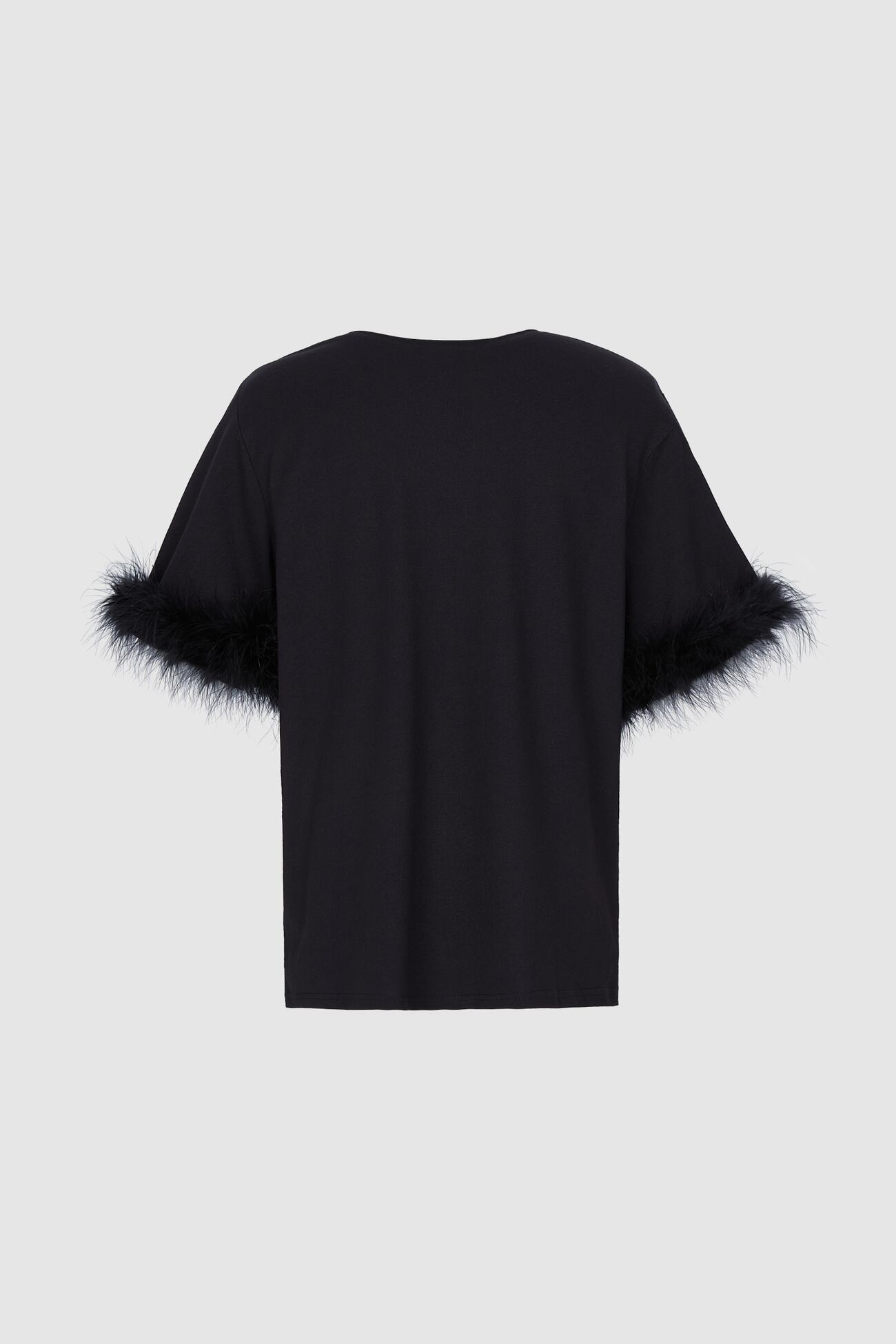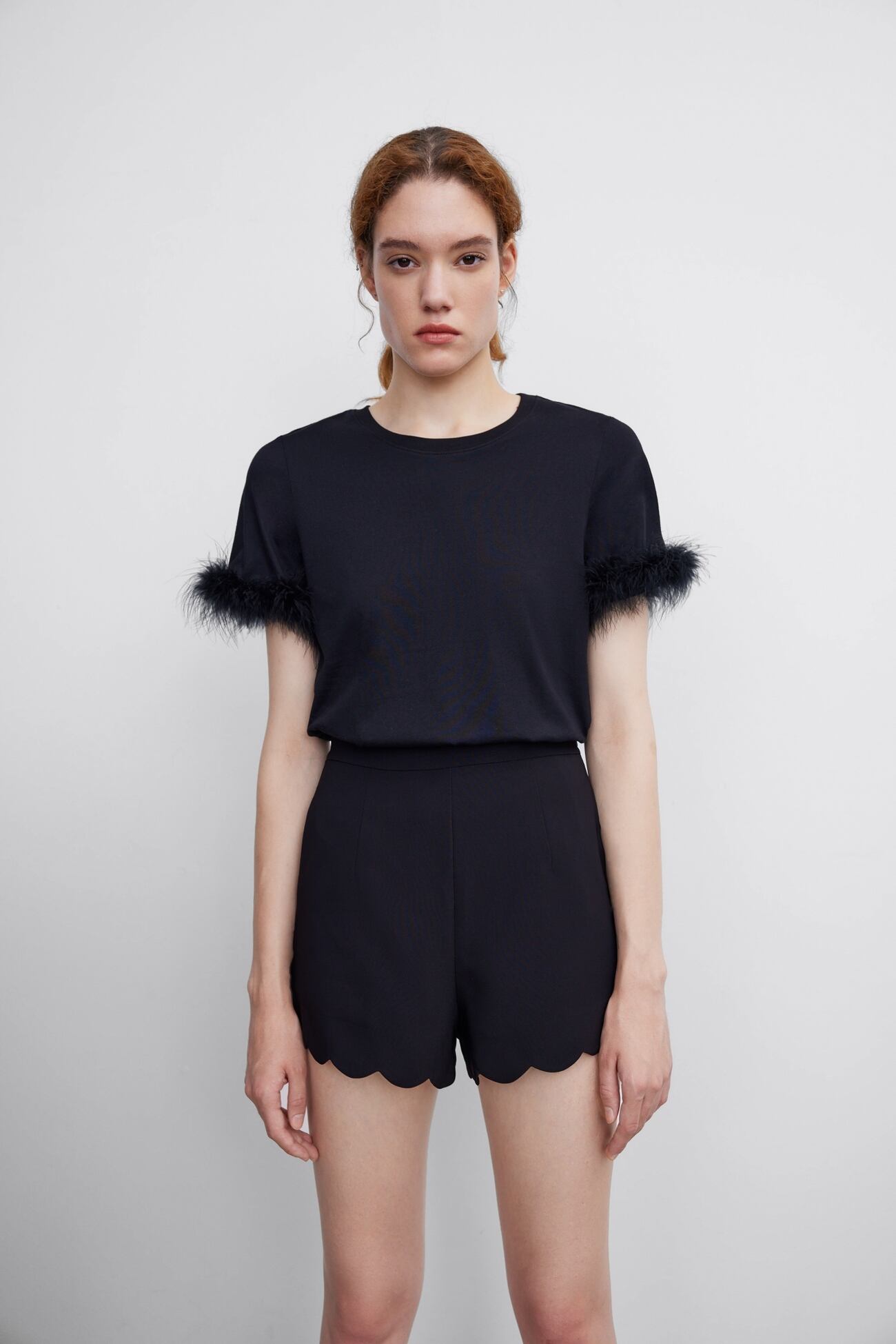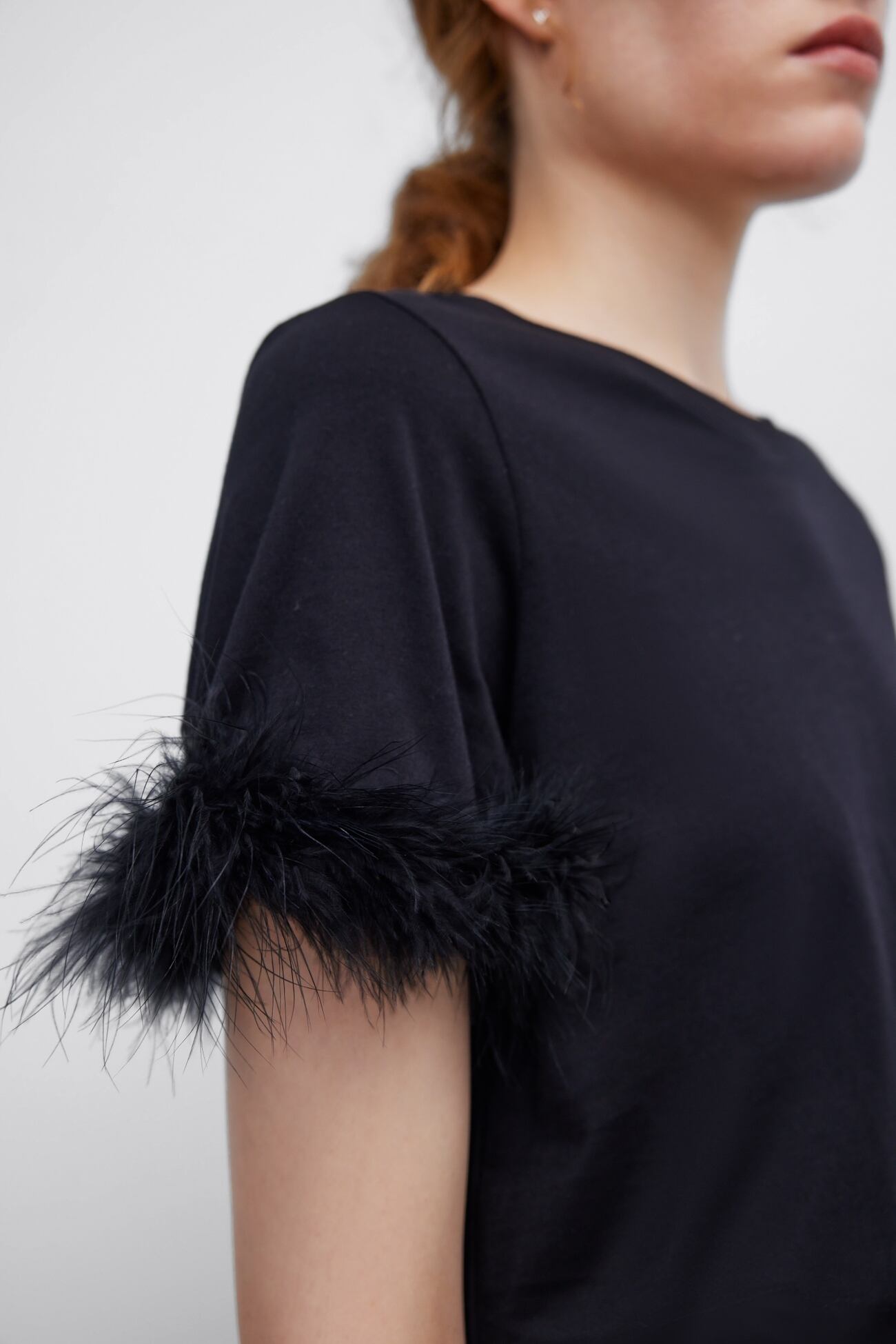 デザインセンスに磨きのかかった、ユニークで個性的なTシャツが登場しました。モノトーンのブラックがクールな印象を与え、女性らしい柔らかなファー素材がアクセントとなっています。大人可愛い雰囲気で、おしゃれな大人女性にぴったりです。袖ありなので、オフィスや通学などでも活躍できます。サイズもXSからMまで豊富に取り揃えているので、自分にぴったりのサイズを見つけることができます。シンプルなデザインながら、上品できれいめなトップスとして、様々なシチュエーションで使えます。この秋、ぜひあなたのコーディネートに取り入れてみてください。