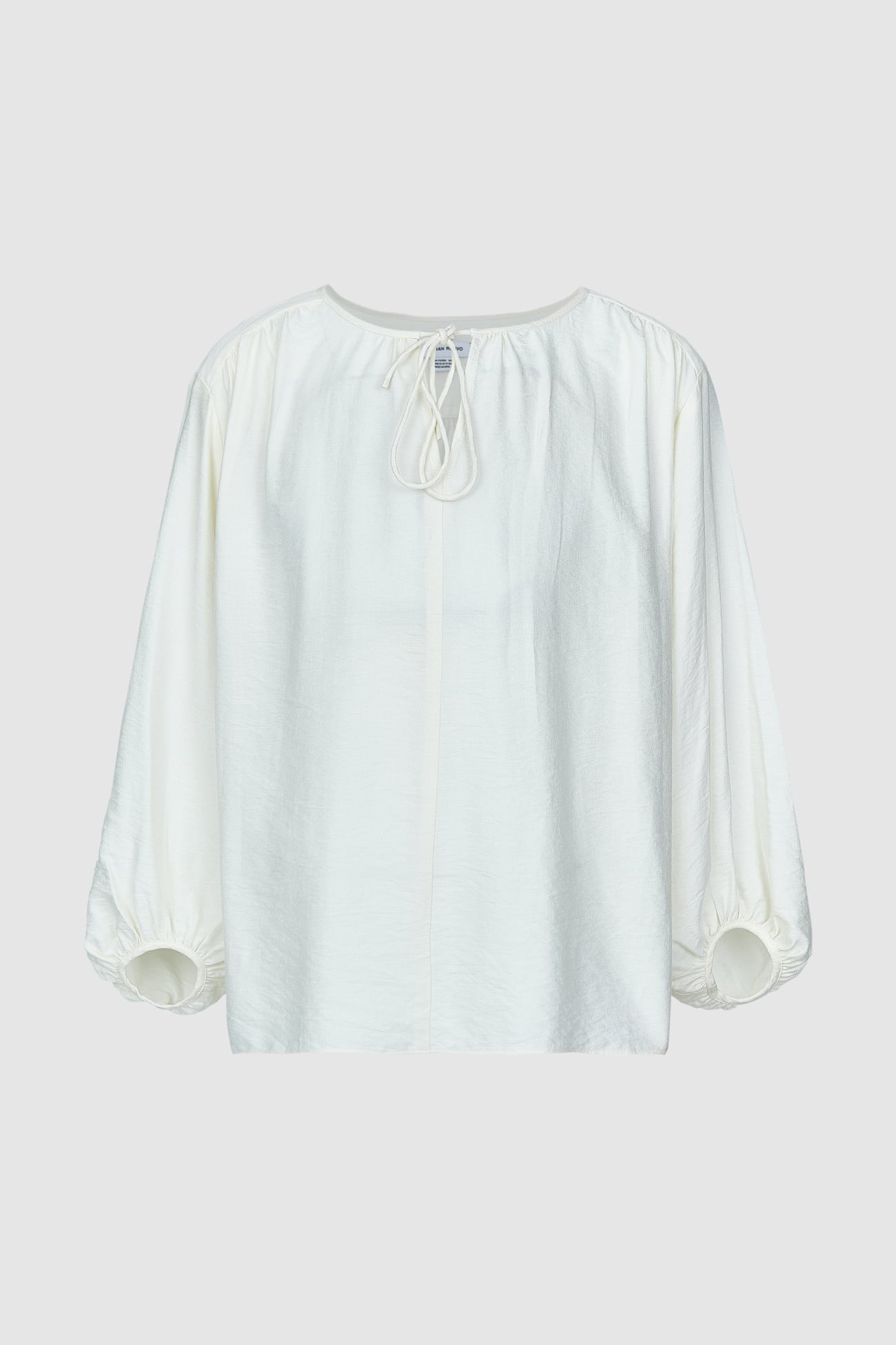 大人可愛いポイントが効いた、ゆったりとした着心地の長袖ブラウスです。女性らしいガーリーな印象を与えるリボンデザインは、首元に軽快さをプラスしてくれます。素材には、優しい風合いのコットン生地を使用しており、デイリーにもオフィスにも着用できます。ベーシックなホワイトカラーで、コーディネートもしやすく、様々なシーンで活躍します。<br>