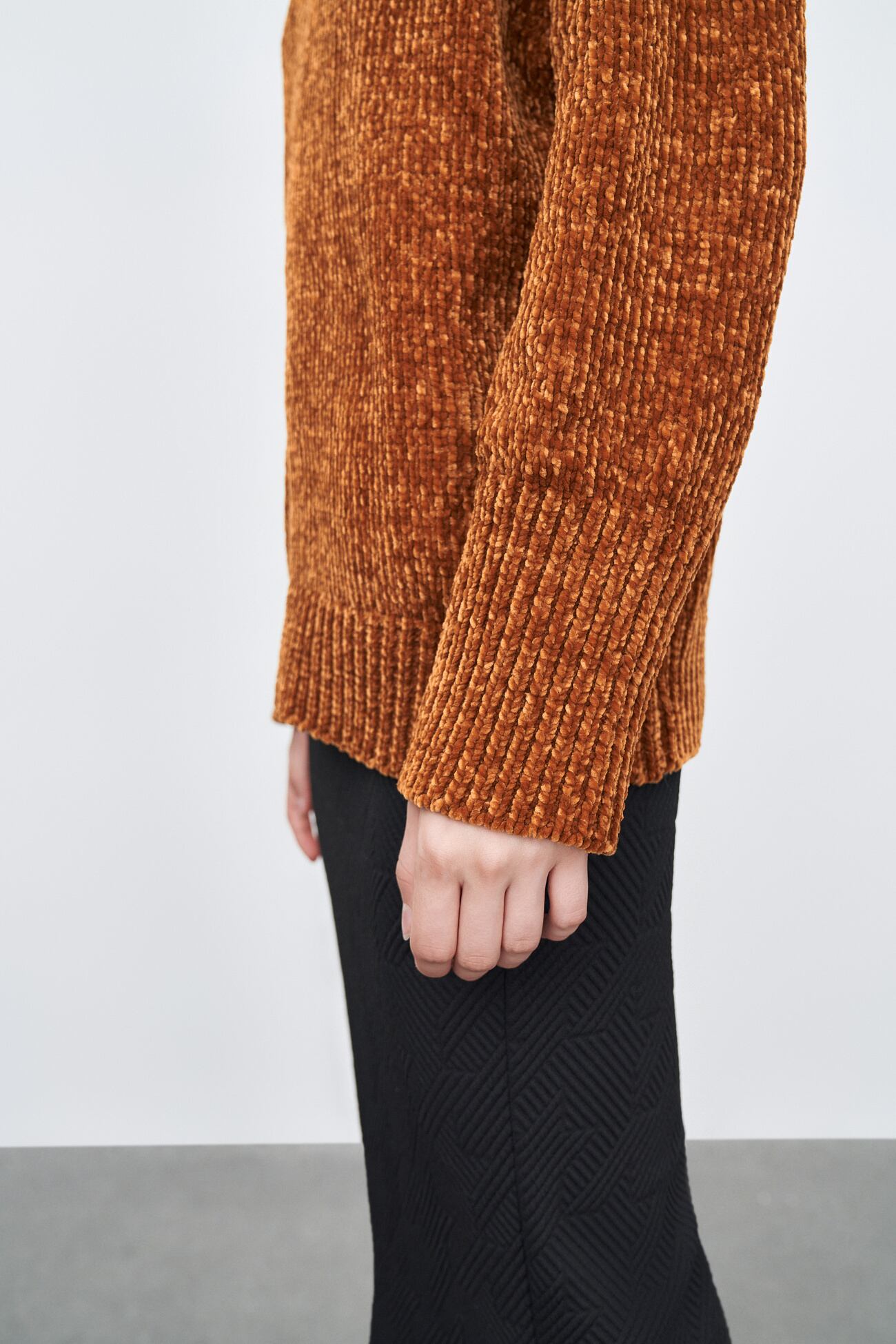 特に、今期トレンドのターメリック色は、暗めの色にありがちな重厚感を感じさせない、華やかさと温かみを持っています。素材には柔らかくて温かみのある生地を使用し、快適な着心地を実現しています。このセーターは、オフィス衣装としても活用でき、普段使いでも着回しやすく、色々なコーディネートにぴったりです。女性らしく美しく見せるために、ぜひご注文ください!