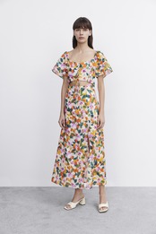 長く愛される一枚、それがこの「フレンチプリントトレジャードレス」です。反応の良い刺繍と花柄が、胸元をキレイに引き立てます。袖もしなやかで綺麗に落ちる造りなので、膝下のラウンドスカートが、華やかなシルエットを作り出します。