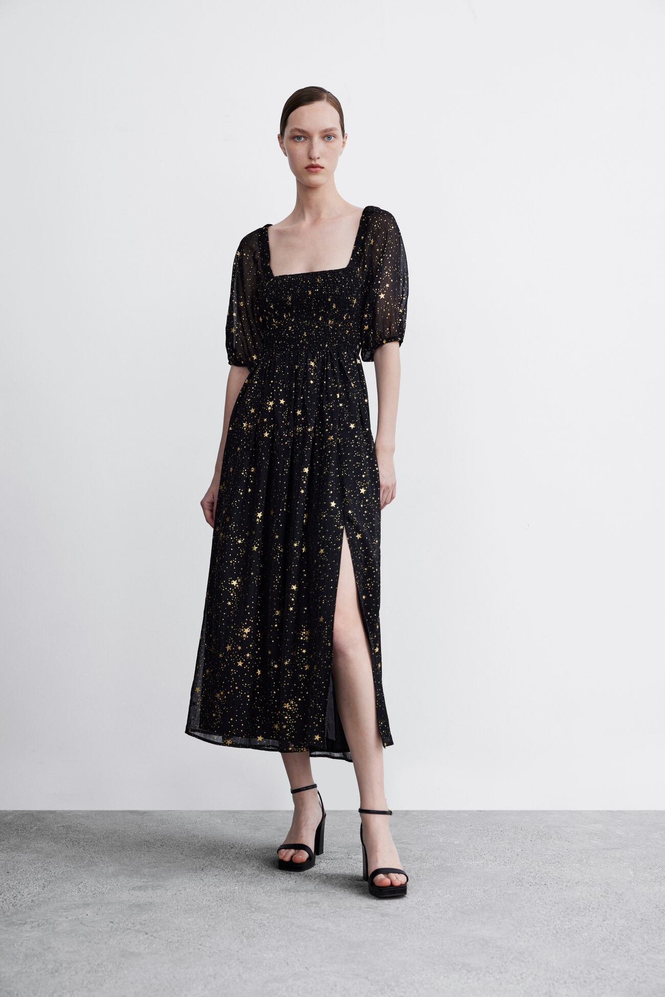 春 夏 レディース 上品エレガント 星柄 スクエアネックワンピース スタイリッシュ ブラック S M L ワンピース 膝下 袖あり 半袖 かわいい 大人可愛い きれいめ シンプル 大人 上品 おしゃれ お洒落 大人可愛い 大人女子 キュート ガーリー 柄 春 夏 秋 誕生日 母の日 10代 20代 30代 40代 レディース 女性用 女の子 オフィス OL 通勤 通学 デート 女子会 お泊まり 休日 旅行 着回し 普段使い ファッション モテ トレンド 流行 インスタ映え 色展開 黒 ブラック