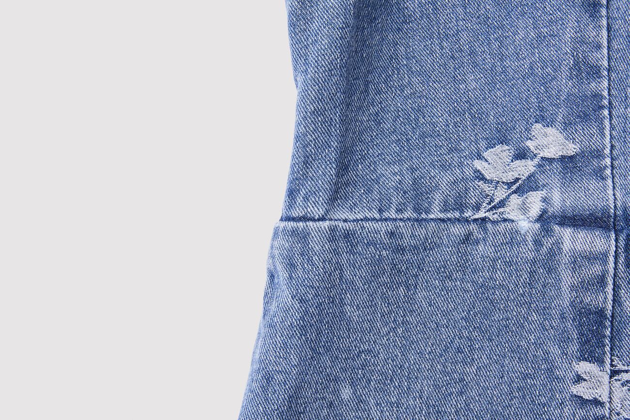 こちらのワンピースは、オーナーが旅先で見つけたこだわりのデニムを使用。一着一着が手作業で加工されているため、柄の配置やデザインに微妙な違いがあります。このワンピースは、あなただけのオリジナルアイテムになること間違いなしです。
