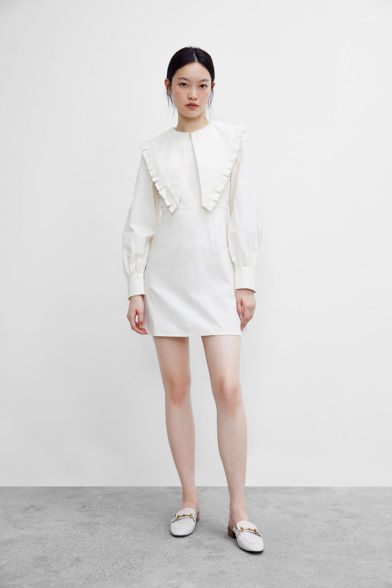 秋 レディース 女性 レトロ 大きな襟 長袖 ドレス ワンピース 個性的 ミニ丈 アイボリーホワイト M L XLワンピース 膝上 袖あり 長袖 ラウンドネック かわいい 大人可愛い きれいめ シンプル 大人 上品 おしゃれ お洒落 大人可愛い 大人女子 キュート ガーリー 無地 春 夏 秋 10代 20代 30代 40代 レディース 女性用 女の子 オフィス OL 通勤 通学 デート 女子会 お泊まり 休日 旅行 着回し 普段使い ファッション モテ トレンド 流行 インスタ映え 色展開 白 ホワイト