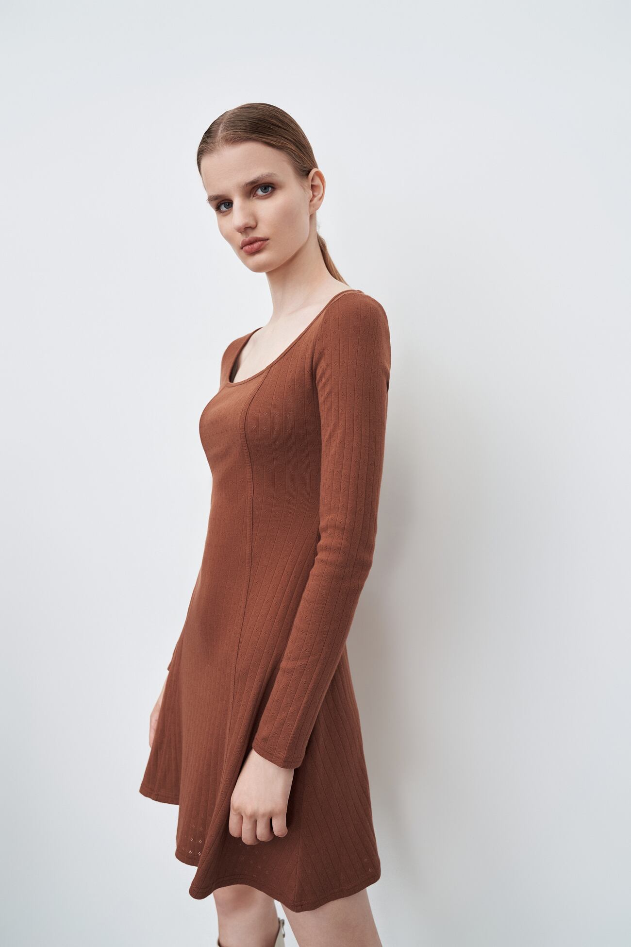 秋 冬 婦人服 レディース ダークパターン U ネックタイトドレス ワンピース スタイリッシュ ターメリック ブラウン XS S M L XL ワンピース 膝上 袖あり 長袖 かわいい 大人可愛い きれいめ シンプル 大人 上品 おしゃれ お洒落 大人可愛い 大人女子 キュート ガーリー 無地 春 夏 秋 10代 20代 30代 40代 レディース 女性用 女の子 オフィス OL 通勤 通学 デート 女子会 着回し 普段使い ファッション モテ トレンド 流行 インスタ映え 色展開 ブラウン オレンジ