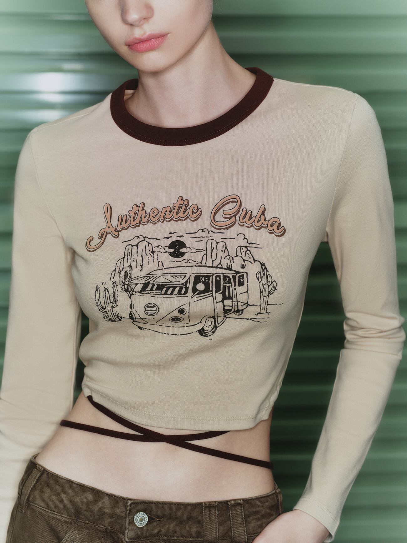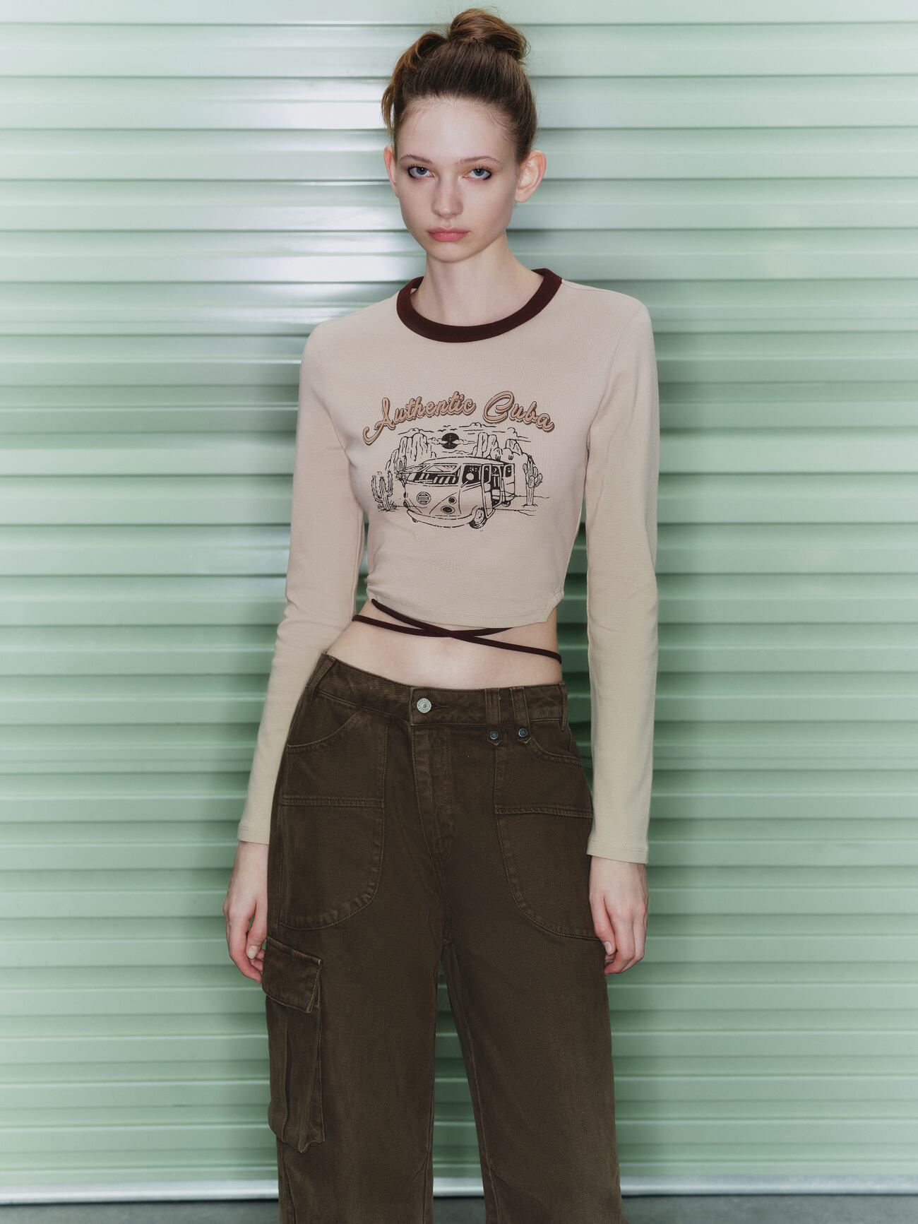秋 婦人服 アメカジ プリント ストラップ 長袖 Tシャツ セクシー スタイリッシュ カジュアル カーキ XS S M L XL トップス シャツ 袖あり 長袖 ラウンドネック かわいい 大人可愛い きれいめ シンプル 大人 上品 おしゃれ お洒落 大人可愛い 大人女子 キュート ガーリー 柄 春 夏 秋 10代 20代 30代 40代 レディース 女性用 女の子 オフィス OL 通勤 通学 デート 女子会 着回し 普段使い ファッション モテ トレンド 流行 インスタ映え 色展開 ブラウングレー