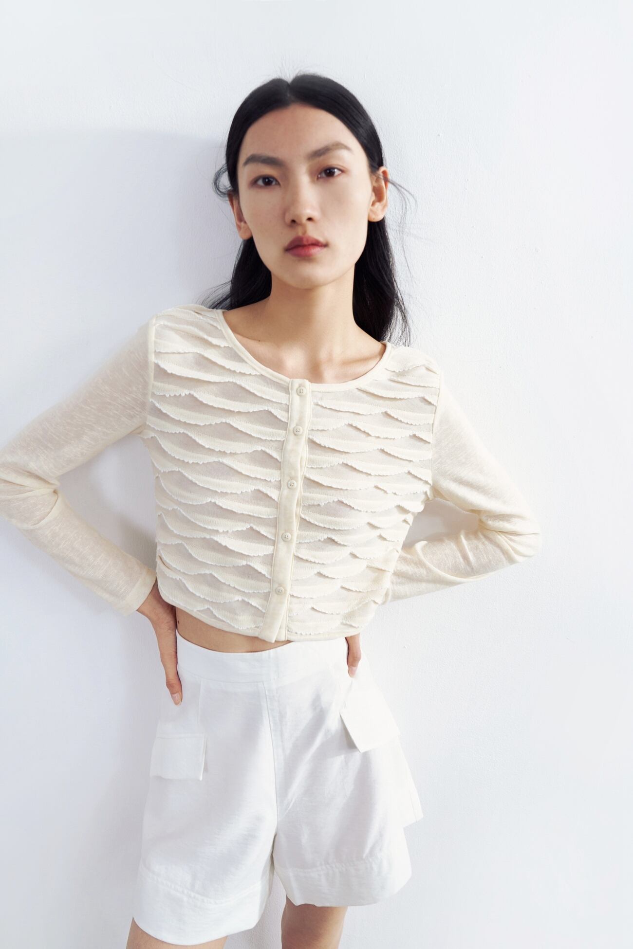 春にピッタリのレースラミネートデザインのトップスです。おしゃれで可愛らしい印象を与える、レースをほどこしたトップスは、フェミニンな雰囲気を演出してくれますよ。丸みのあるロングラインで、女性らしいシルエットになっており、長めの袖も可愛さを引き立てます。カジュアルなスタイルにも、オフィススタイルにも合うので、幅広くお使いください。色展開も豊富なので、お好きな色を選んでくださいね。