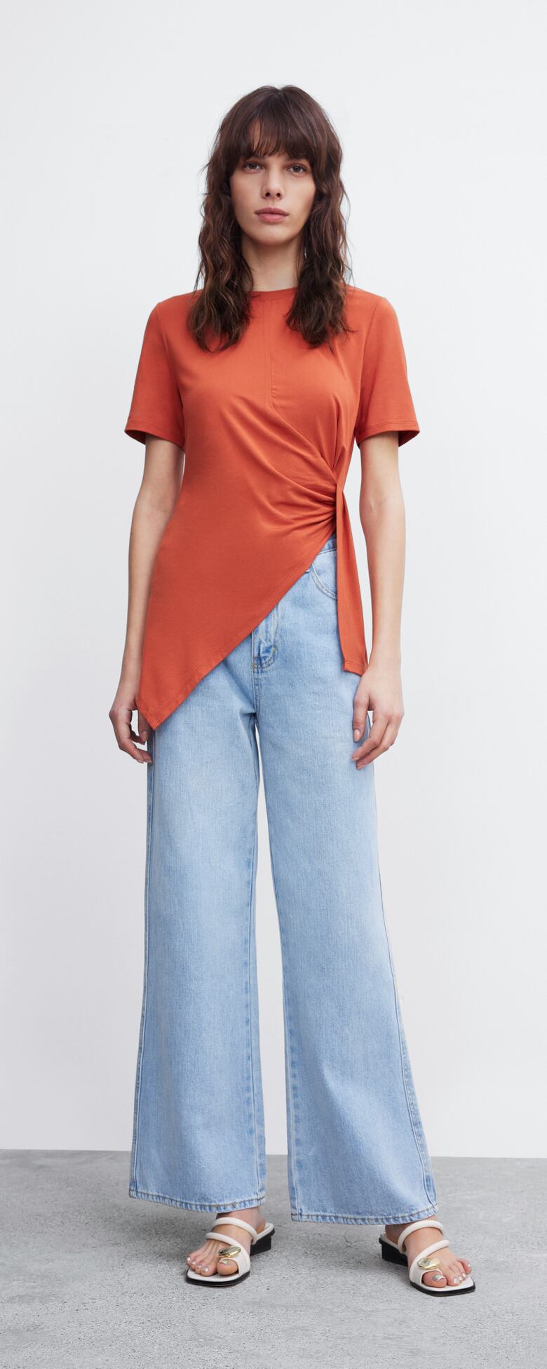 この季節にぴったりな、軽やかなシンプルTシャツが登場しました。こだわりの薄手素材で、ゆるめのドレープシルエットになっているので、女性らしい雰囲気を演出できます。ユニークなデザインのスリットが入った袖が程よい抜け感を与え、さり気なくオシャレなアクセントに。毎日のコーディネートに、重宝すること間違いなしです。