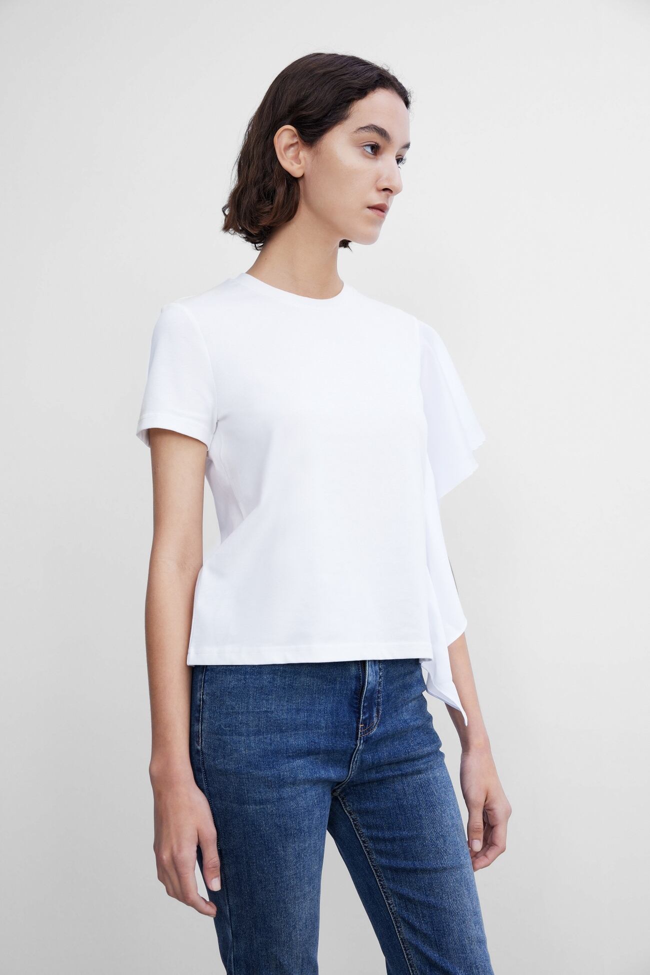 レディース ファッション フリル 薄手 半袖Tシャツ 個性的 デザイン ユニークなデザイン ホワイト S M L トップス Tシャツ シャツ 白シャツ 白トップス 袖あり 半袖 ラウンドネック かわいい 大人可愛い きれいめ シンプル 大人 上品 おしゃれ お洒落 大人可愛い 大人女子 キュート ガーリー 無地 春 夏 秋 10代 20代 30代 40代 レディース 女性用 女の子 オフィス OL 通勤 通学 着回し 普段使い ファッション モテ トレンド 流行 インスタ映え 色展開 白 ホワイト