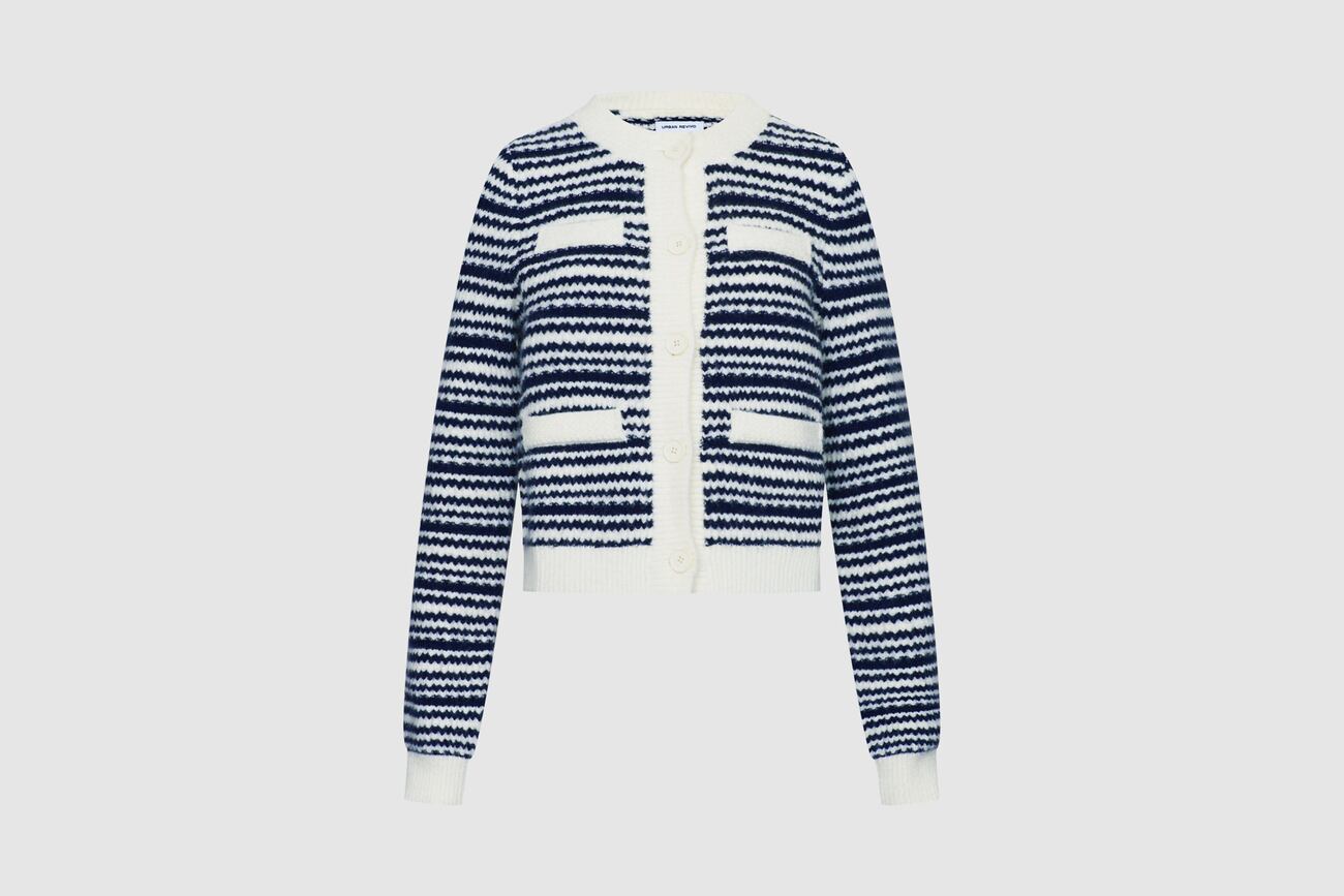 甘さ控えめで、大人可愛いストライプニットジャケットが登場しました!個性的なデザインとダークブルーのカラーが、春夏秋のファッションスタイルにぴったり。着心地も抜群で、長袖でも袖口はゆったりめに設定。オフィスやデート、女子会などのシーンで活躍すること間違いなしです。