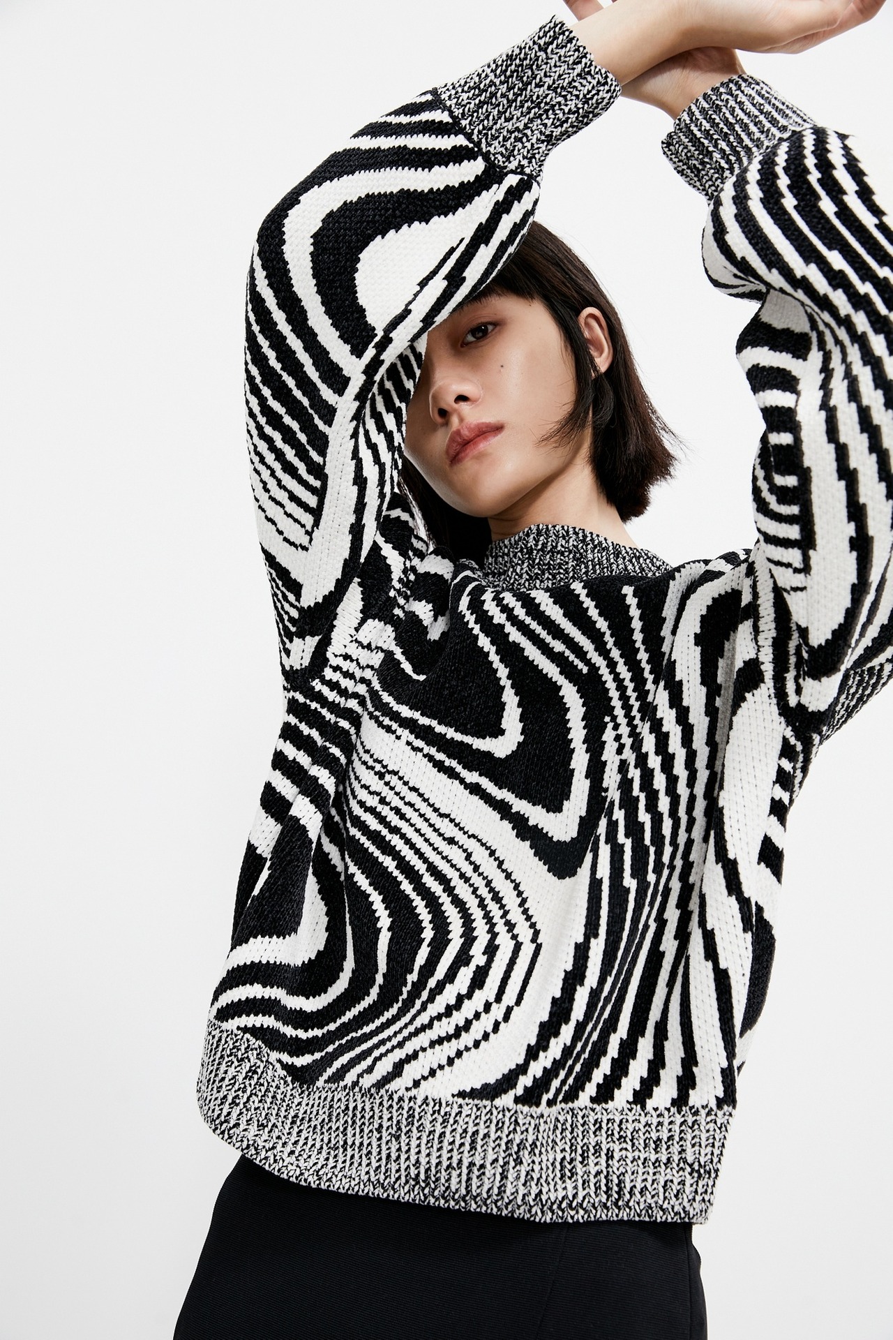 秋 冬 レディース ジオメトリックジャガード ルーズセーター スタイリッシュ クール シンプル シック ブラック ネイビー XS S M L 個性的 トップス Tシャツ シャツ 袖あり 長袖 かわいい 大人可愛い きれいめ シンプル 大人 上品 おしゃれ お洒落 大人可愛い 大人女子 柄 春 夏 秋 10代 20代 30代 40代 レディース 女性用 女の子 オフィス OL 通勤 通学 デート 女子会 お泊まり 普段使い ファッション モテ トレンド 流行 インスタ映え 色展開 黒 ブラック 青 ブルー
