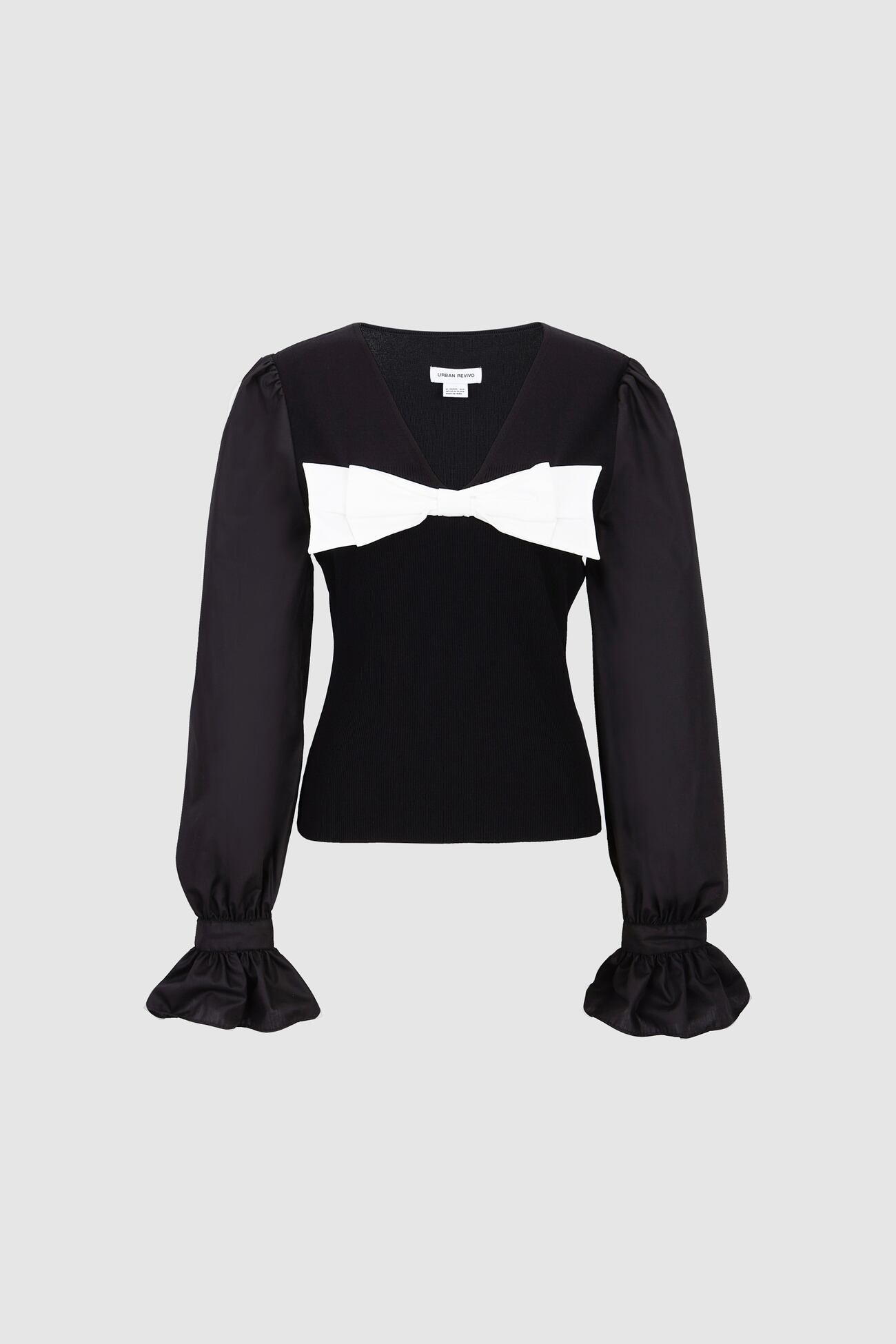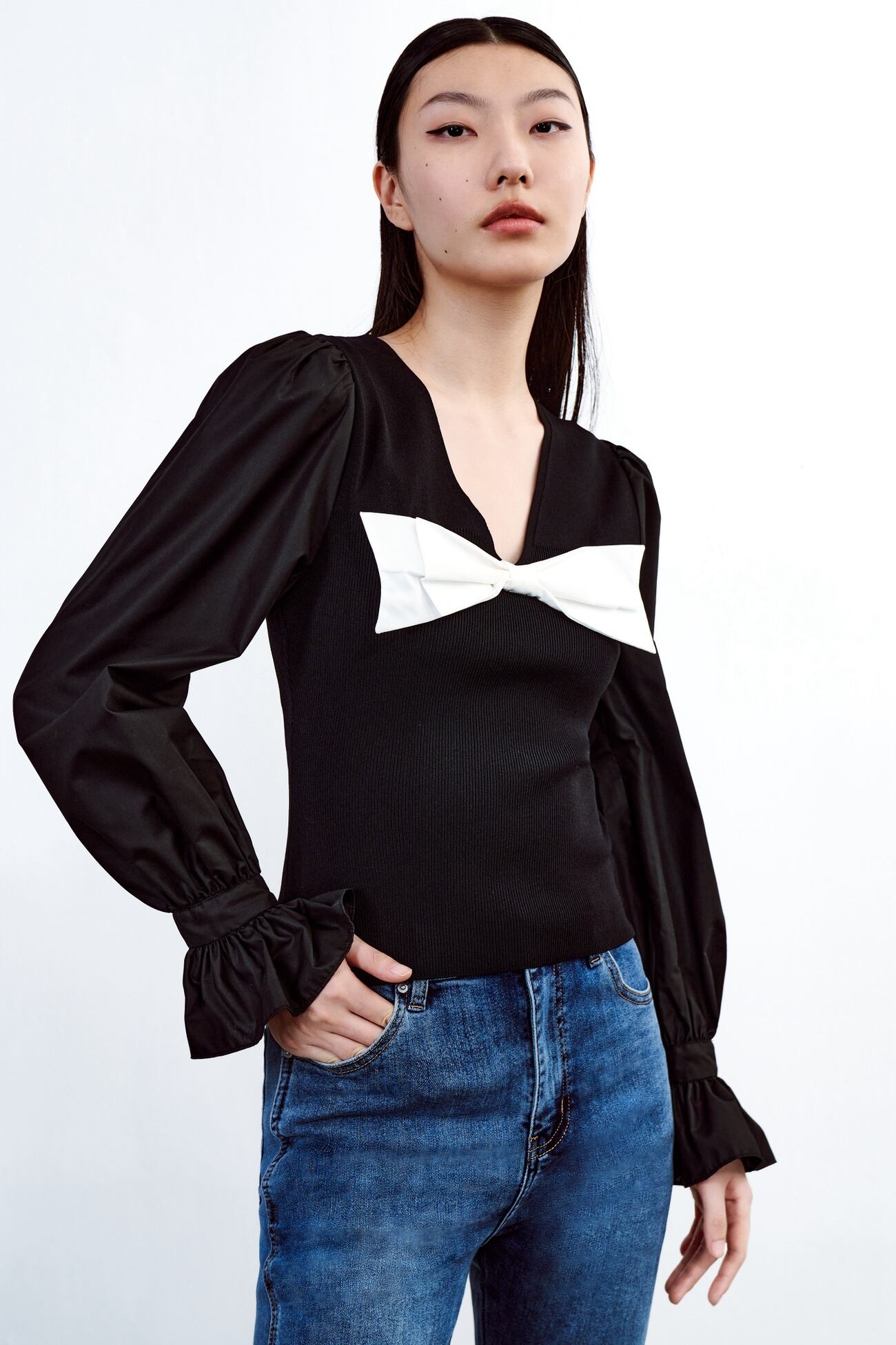 春 秋 婦人服 スウィート コントラストカラー ボウ タイト ニット Tシャツ スタイリッシュ ガーリー ブラック XS S M L XL トップス Tシャツ シャツ 袖あり 長袖 Vネック かわいい 大人可愛い きれいめ シンプル 大人 上品 おしゃれ お洒落 大人可愛い 大人女子 無地 春 夏 秋 10代 20代 30代 40代 レディース 女性用 女の子 オフィス OL 通勤 通学 デート 女子会 着回し 普段使い ファッション モテ トレンド 流行 インスタ映え 色展開 黒 ブラック | ameiro18