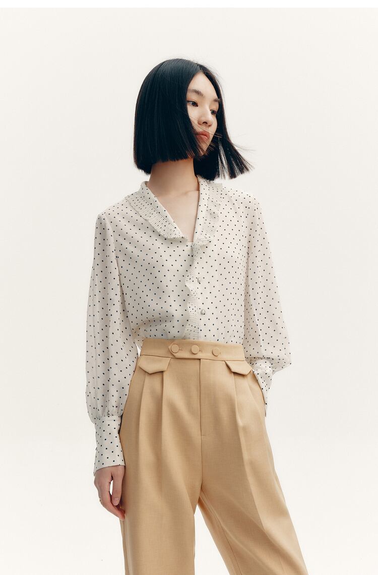 秋に向けて、レトロでロマンチックなシックなシャツをご紹介します。ゆったりしたルーズドレープのシルエットと、かわいい柄が印象的な一枚です。Vネックと長袖のデザインで、全体的にはシンプルに仕上げた大人可愛いアイテムになっています。