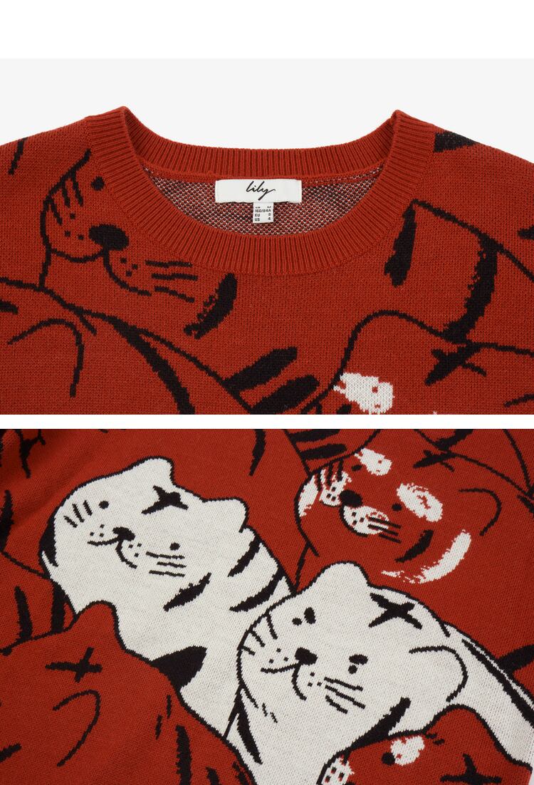 女性 タイガー ジャカード ニット セーター ボトム ルーズ プルオーバー ソフト ワックス セーター レッド S M L XL トップス 袖あり 長袖 かわいい 大人可愛い きれいめ シンプル 大人 上品 おしゃれ お洒落 大人可愛い 大人女子 キュート ガーリー 柄 春 夏 秋 10代 20代 30代 40代 レディース 女性用 女の子 オフィス OL 通勤 通学 デート 女子会 お泊まり 休日 旅行 着回し 普段使い ファッション モテ トレンド 流行 インスタ映え 色展開 赤 レッド