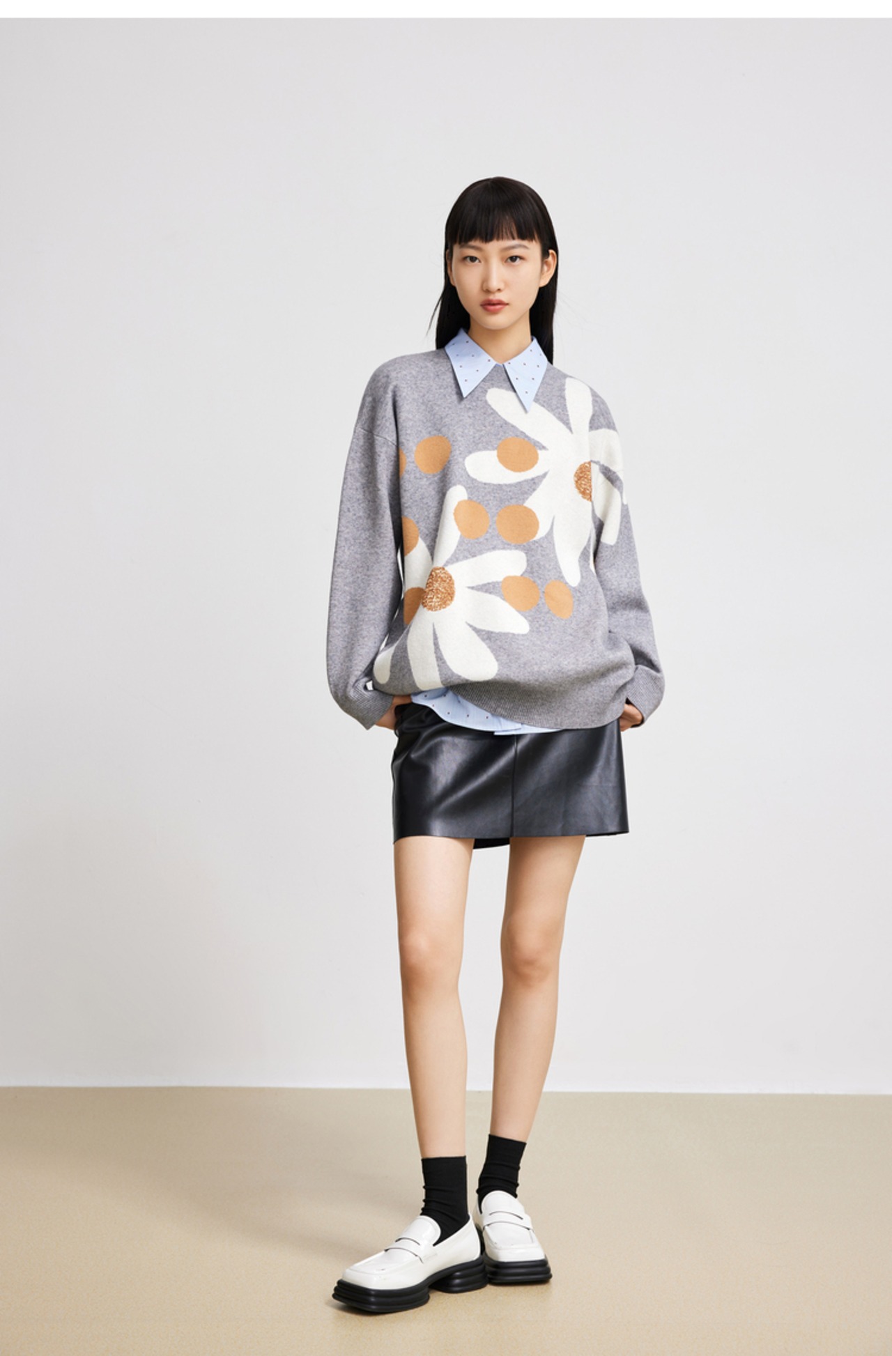 フェミニンで可愛らしい花柄が印象的なルーズなドロップショルダーのプルオーバー。程よく体にフィットするデザインで、女性らしさと上品さを兼ね備えています。また、モダンで洗練された印象を与えるスパンコールがアクセントになっており、ファッションのセンスをアピールできます。Sサイズ、Mサイズの2サイズ展開で、幅広い年齢層の方におすすめです。