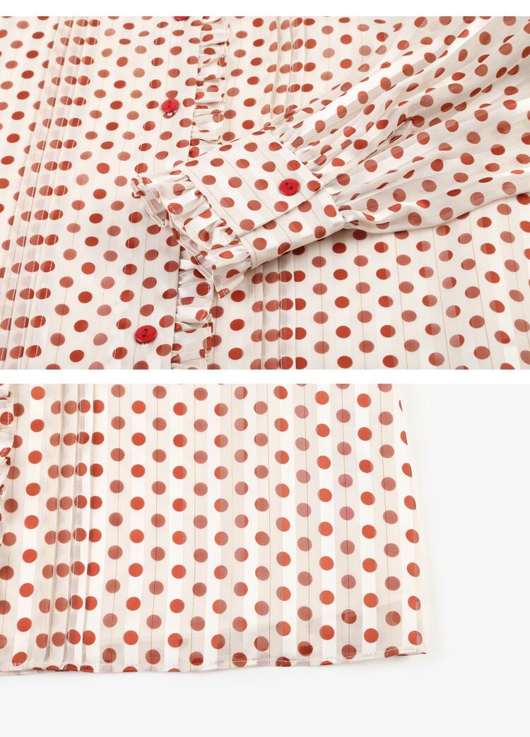 秋 婦人服 レトロ ロマンチック エレガントなレース ルーズ 長袖 シャツ ドット レッド ホワイト S M L XL トップス シャツ 袖あり 長袖 かわいい 大人可愛い きれいめ シンプル 大人 上品 おしゃれ お洒落 大人可愛い 大人女子 キュート ガーリー 柄 春 夏 秋 10代 20代 30代 40代 レディース 女性用 女の子 オフィス OL 通勤 通学 デート 女子会 お泊まり 休日 旅行 着回し 普段使い ファッション モテ トレンド 流行 インスタ映え 色展開 ホワイト レッド