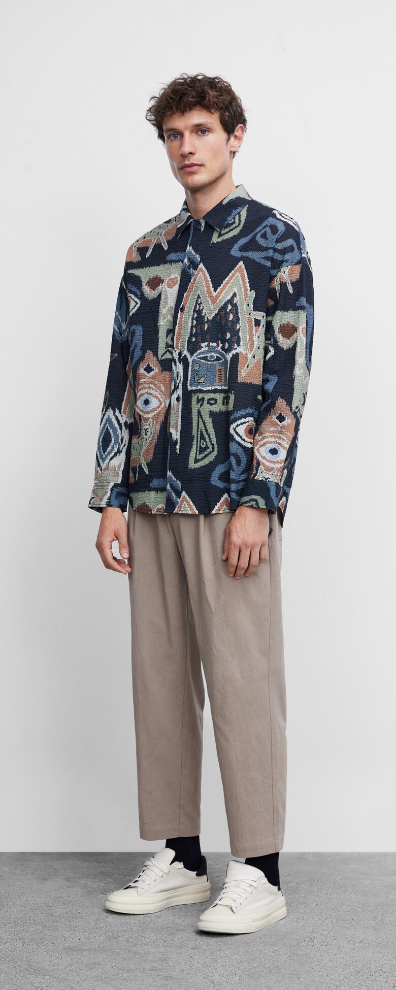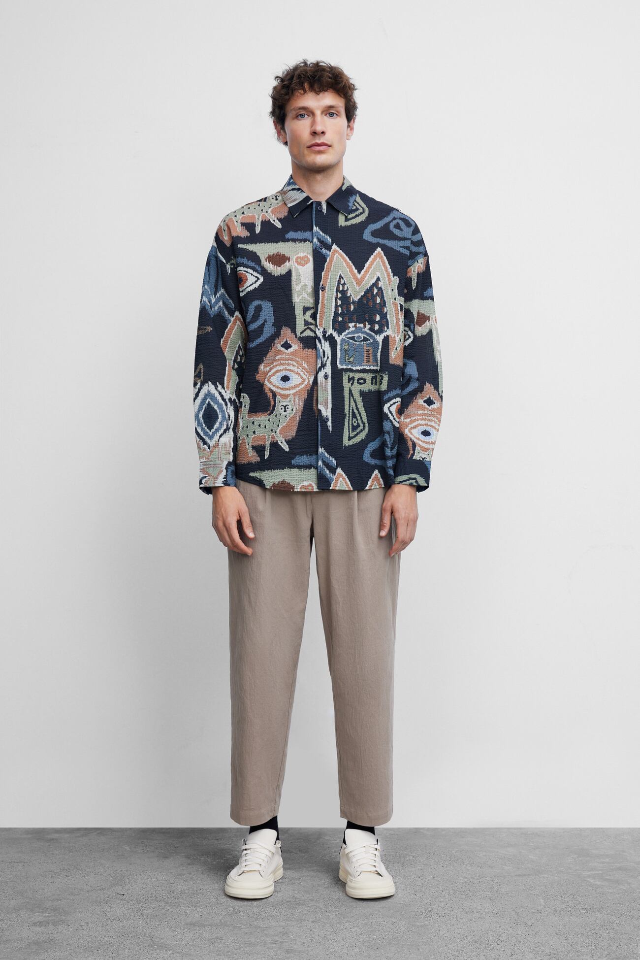 秋にぴったりの個性的でおしゃれなカーディガンシャツが登場!ユニークなプリントとイレギュラーデザインが、まとめたくなるシンプルな秋服にアクセントをプラスしてくれます。シルエットはルーズで、袖あり長袖なので、まだまだ夏に履く服が気になる季節には、ブレスレットや腕時計を合わせて温度調整もOK!大人な着こなしを楽しめます。