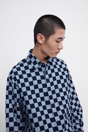 夏には羽織りものとして、秋にはジャケットのインナーとして、また春には薄手のアウターとしても重宝します。カラバリは爽やかなブルーのチェック柄。XSからLまでの4サイズ展開。10代から50代の男性に幅広く使いやすいデザインとサイズ選びになっています。