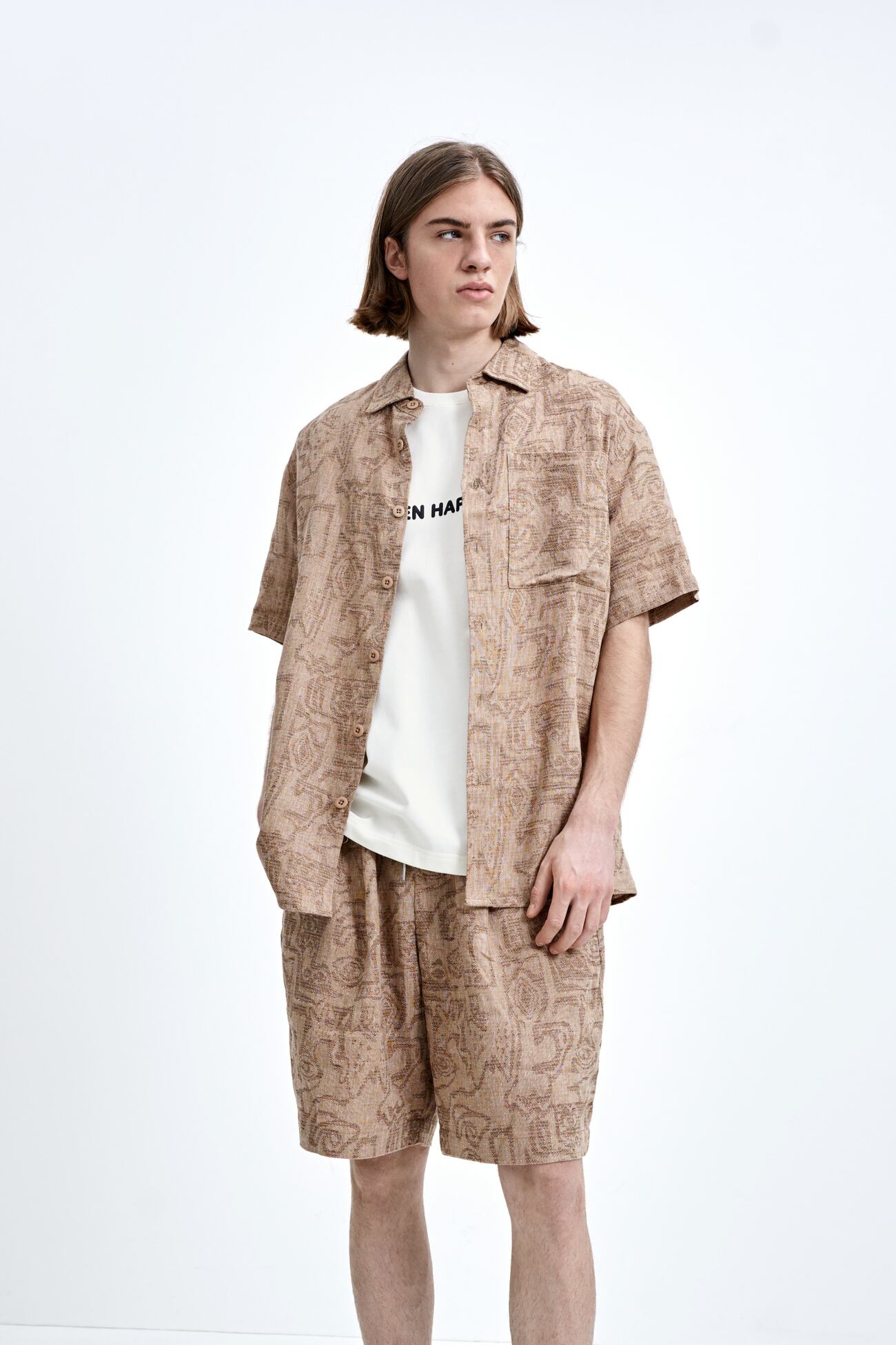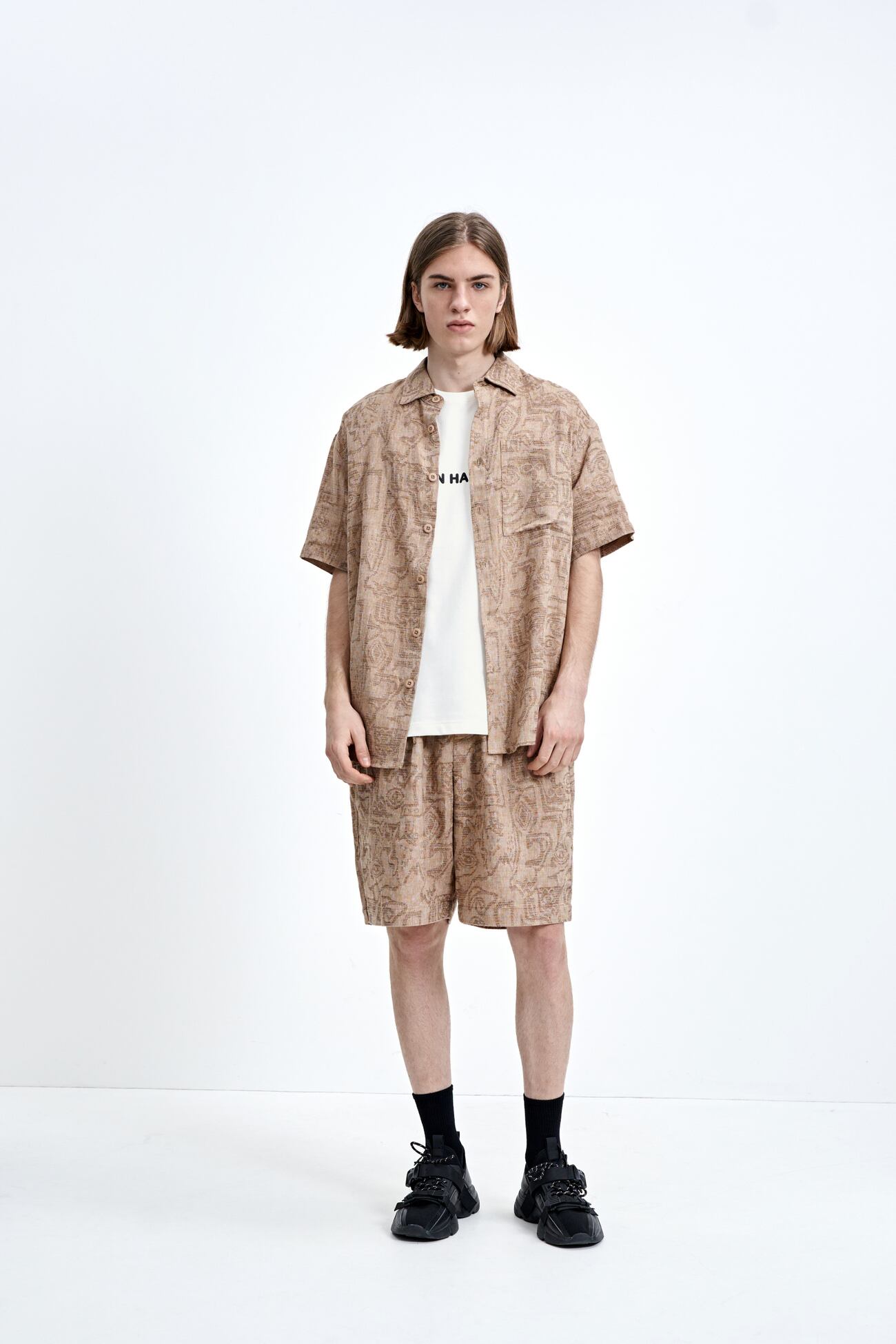 このメンズ半袖シャツは、伝統的なトライバル柄をアレンジしながら、ユニークなデザインに仕上げました。ラフでカジュアルなレイジースタイルを体現することができます。また、シンプルながらきれいめなデザインで大人上品な印象を与えます。ゆったりとしたサイズ感は、自由な動きを可能にし、快適さを追求した上質な素材を使用しています。
