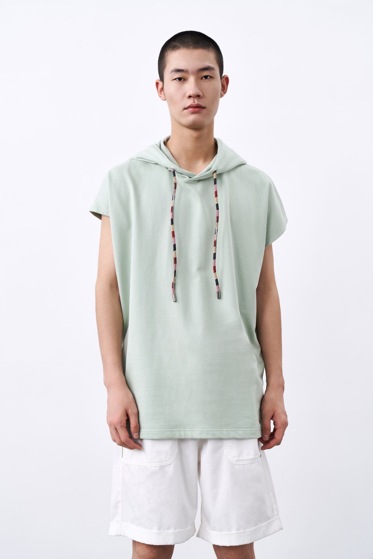春 夏 秋 メンズ カジュアル ストリート系 フード付き ノースリーブ ベスト カジュアル ライトグリーン XS S M L トップス シャツ 白トップス 袖あり 半袖 きれいめ シンプル 大人 上品 おしゃれ お洒落 かっこいい メンズライク クール 無地 春 夏 秋 10代 20代 30代 40代 50代 メンズ 男の子 OL 通勤 通学 お泊まり 休日 旅行 着回し 普段使い ファッション コーデ モテ