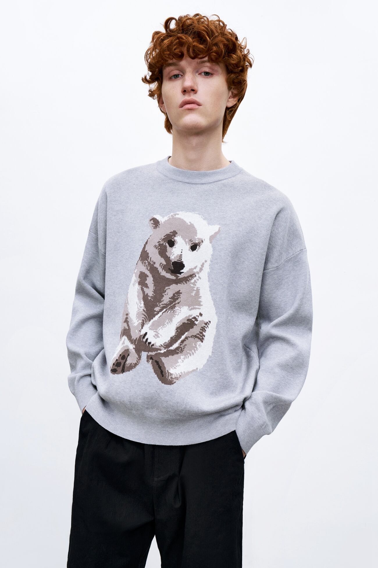 秋 冬 メンズ ファッション アニマル柄 ルーズ プルオーバー セーター カジュアル グレー ピンク XS S M L 個性的 トップス Tシャツ シャツ 袖あり 長袖 きれいめ シンプル 大人 上品 おしゃれ お洒落 かっこいい メンズライク クール 柄 春 夏 秋 10代 20代 30代 40代 メンズ 男の子 OL 通勤 通学 お泊まり 休日 旅行 着回し 普段使い ファッション コーデ モテ グレー ピンク