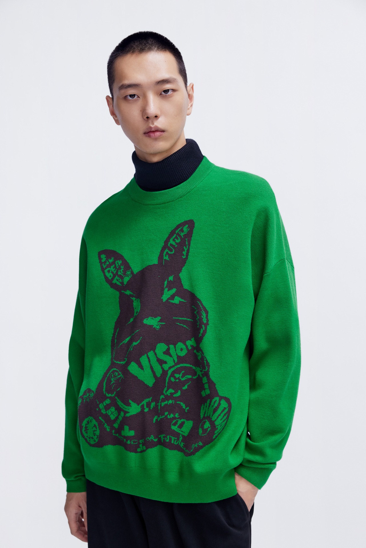 メンズ ラビット柄 ゆったり 厚手 セーター カジュアル スタイリッシュ ミディアムグリーン レッド XS S M L 個性的 トップス トレーナー 袖あり 長袖 きれいめ シンプル 大人 上品 おしゃれ お洒落 かっこいい メンズライク クール 柄 春 秋 冬 10代 20代 30代 40代 メンズ 男の子 OL 通勤 通学 お泊まり 休日 旅行 着回し 普段使い ファッション コーデ モテ レッド 緑 グリーン | ameiro18