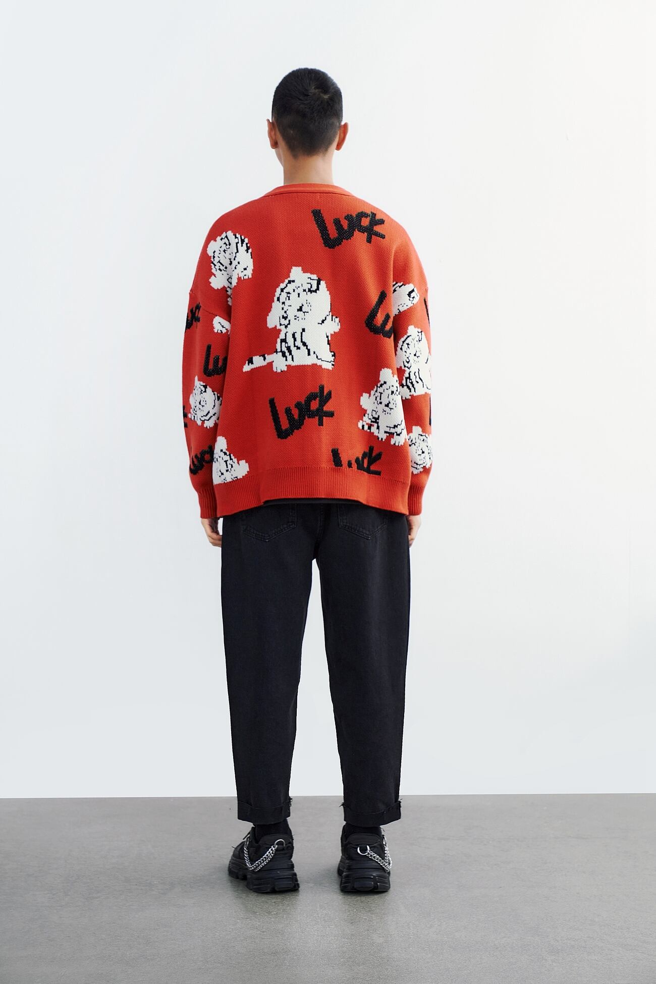 春 冬 メンズ トレンド 虎柄 セーター ニット ジャケット レッド 派手 ユニークなデザイン XS S M L トップス ニットソー ジャケット 袖あり 長袖 ニット きれいめ シンプル おしゃれ お洒落 かっこいい ラフ メンズライク ボーイッシュ クール 存在感 柄 春 秋 冬 10代 20代 30代 40代 メンズ 男性用 男の子 学生 デート お出かけ 休日 アウトドア パーティー イベント リゾート 旅行 海 ガーデン 普段使い ファッション コーデ スタイル モテ インスタ映え 赤 レッド | ameiro18